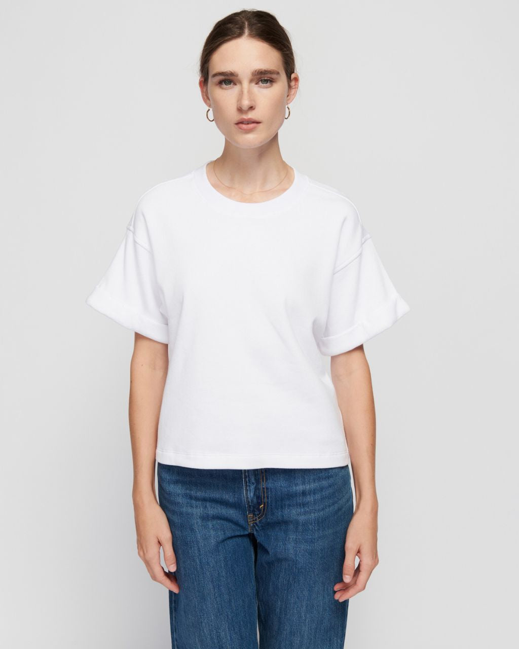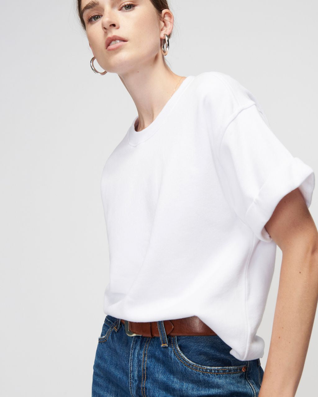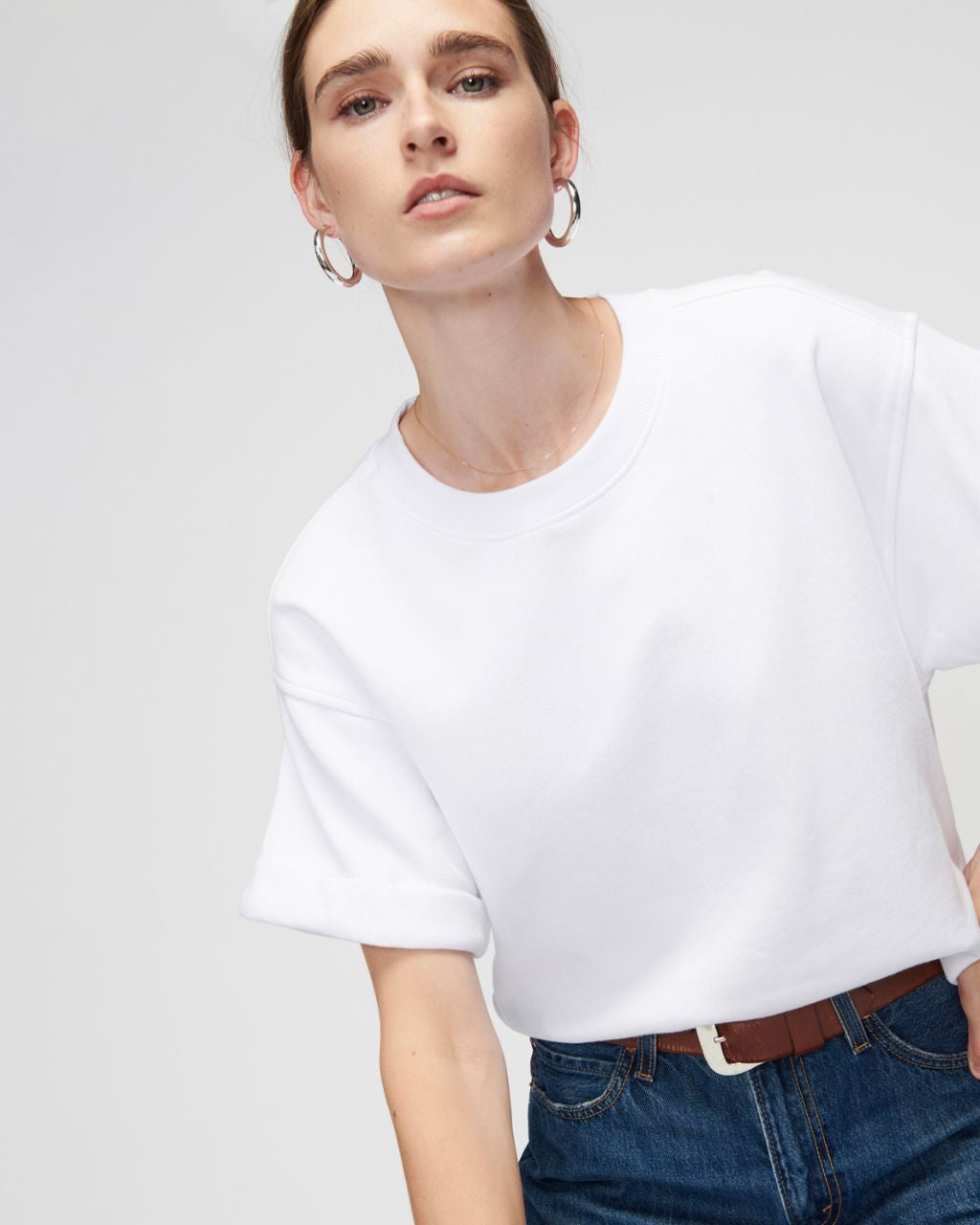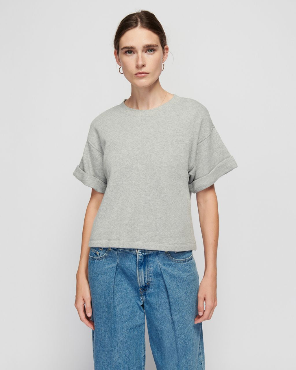 An oversized sweatshirt-tee with rolled boxy cuffs and an effortlessly relaxed fit. Perfect for those sunny spring days that’s kinda cool, but kinda warm… (This one comes in White, Heather Grey, and Black)