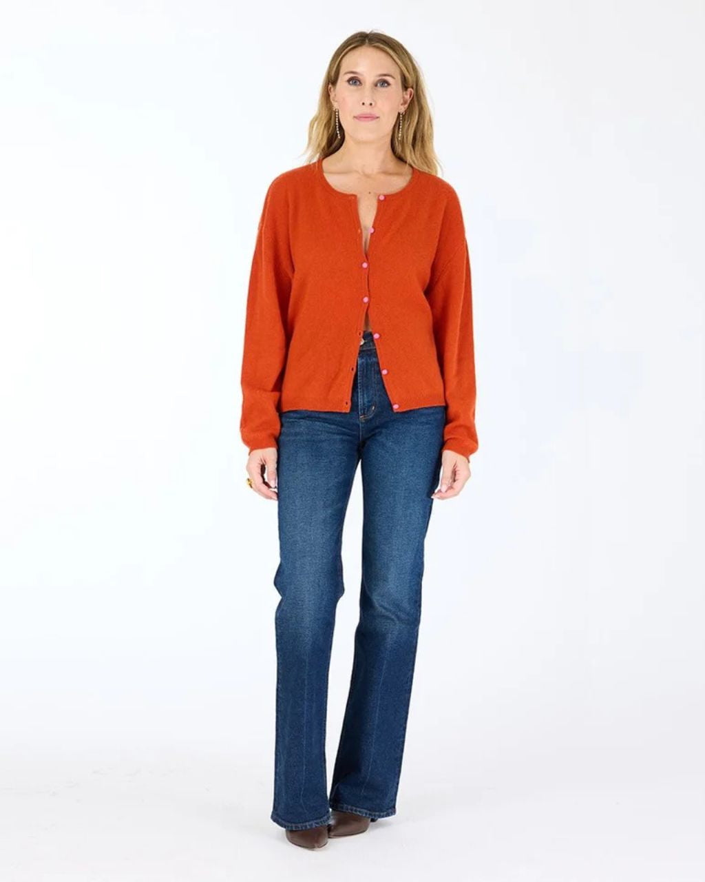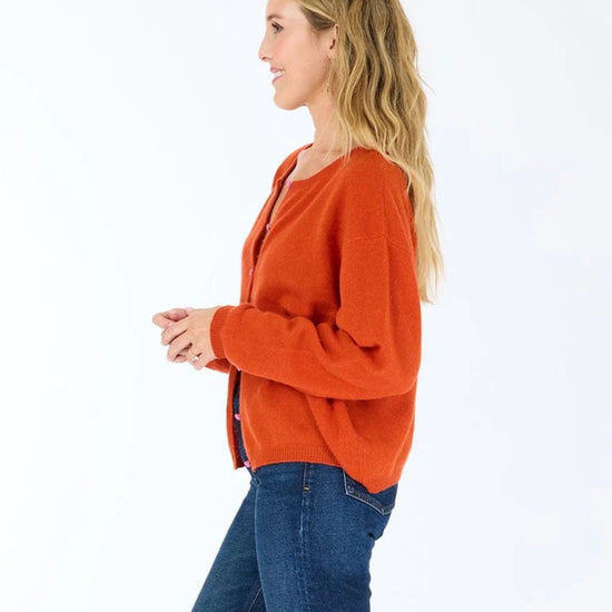 The Bassett Cardigan is knit from 100% Featherweight Cashmere. Designed to wear over a tank or cami or on its own, super lightweight with contrast covered buttons. Layer under a blazer and just about anything else.