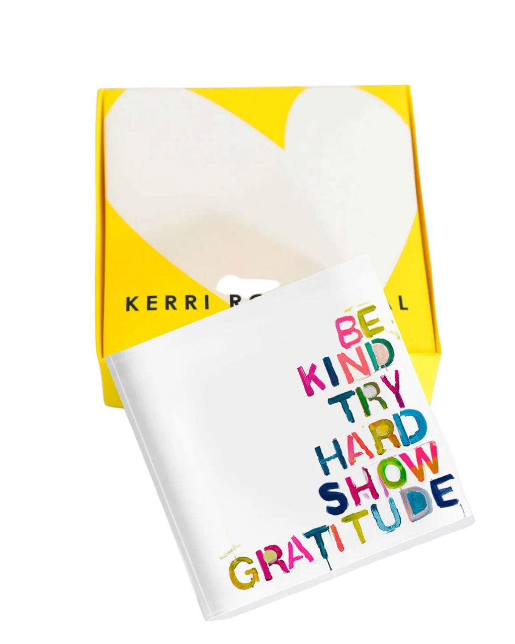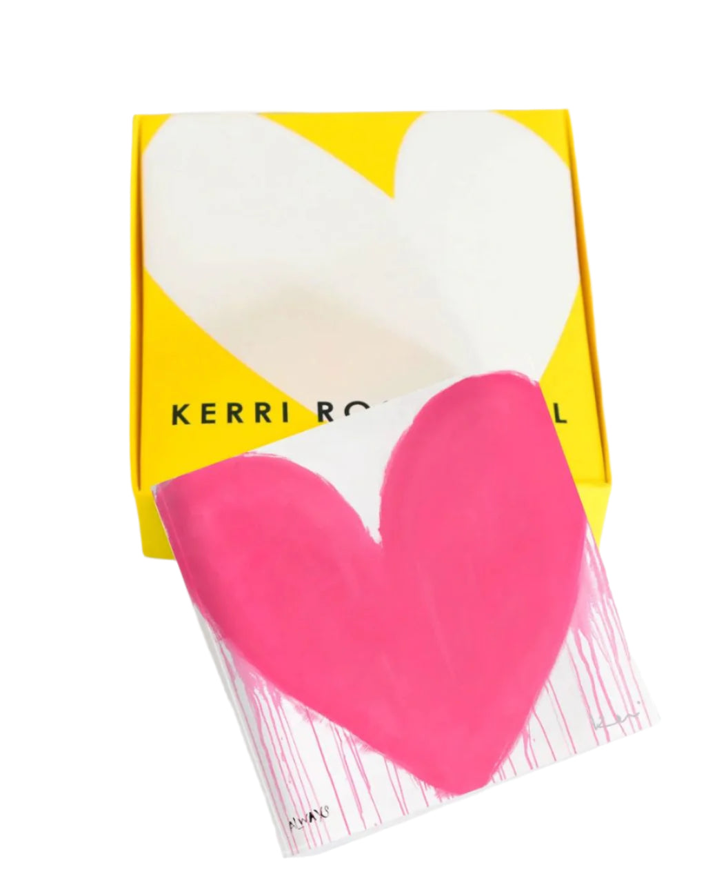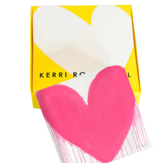 Blocks of Love are signed, mini editions of Kerri Rosenthal's artwork mounted on 3/4" plexiglass. Kerri uses them to style a coffee table, night stand or book shelf. She gives them as gifts to friends and sets one on each plate at her dinner parties. Ships in a KR yellow Drippy Heart Box, ready to gift!