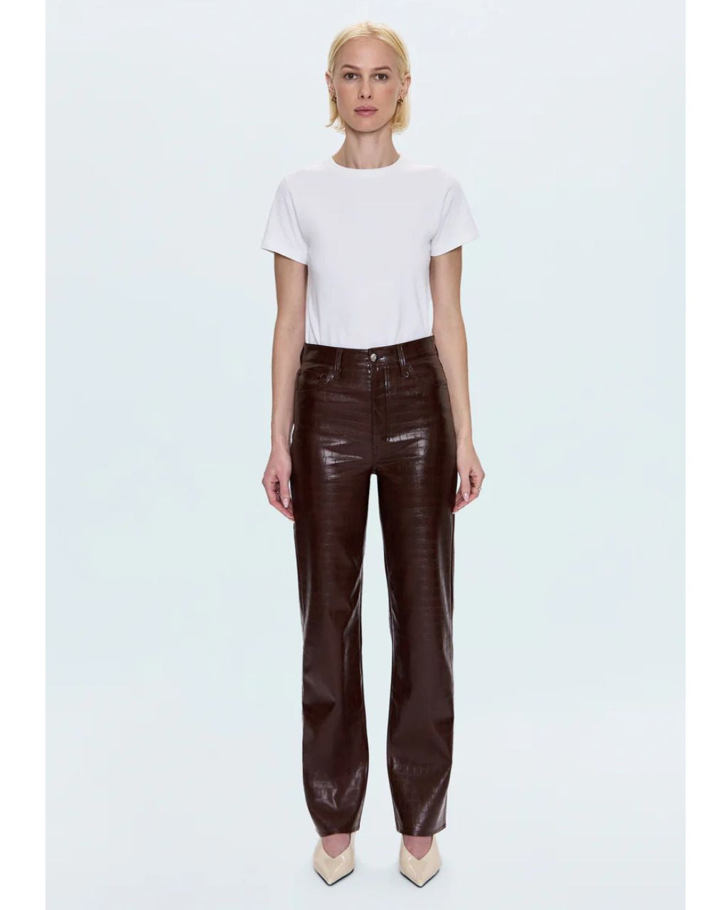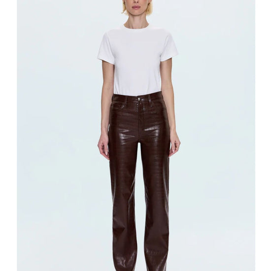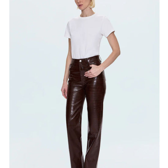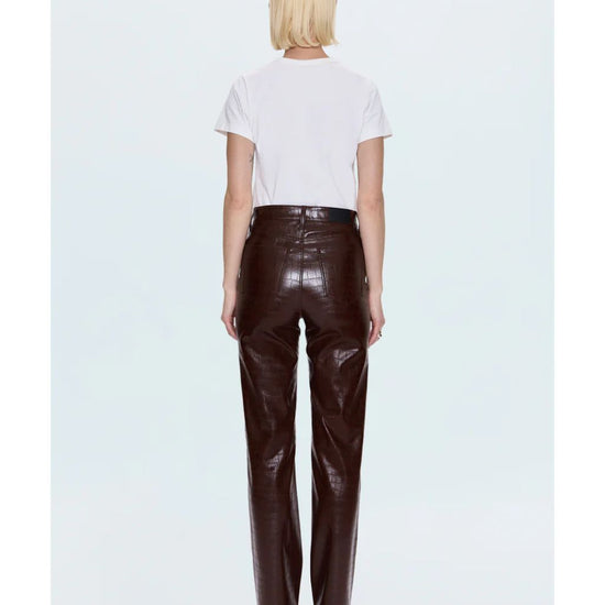 The best-selling straight leg that gets it right. Cassie's super high rise creates a sculpted silhouette that's both commanding and comfortable. The classic straight leg falls to a full-length hem, finished with a 31" inseam. Crafted from alt leather in Tobacco Croc, a rich brown finish with luxurious crocodile texture that brings sophisticated edge to any look.