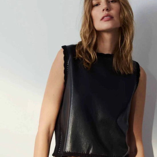 Faux leather mixed media tank top