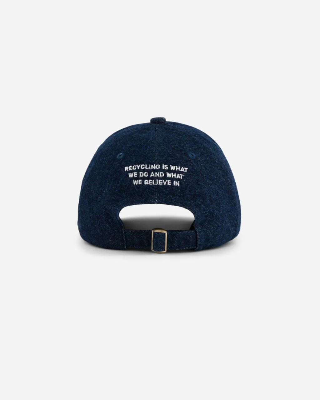 Rivedroit’s very first cap, embroidered on the back with the brand’s claim: Recycling is what we do and what we believe in.