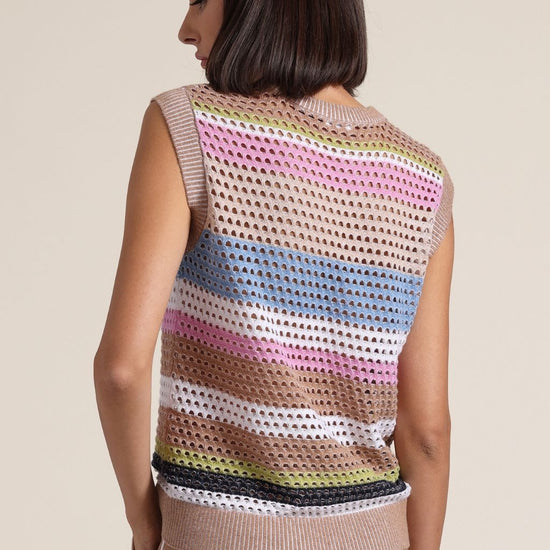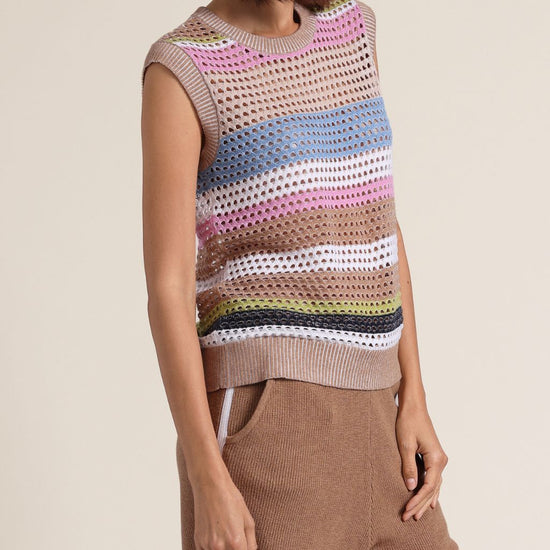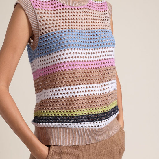 Cotton Cashmere Plaited Mesh Stripe Muscle Tank
