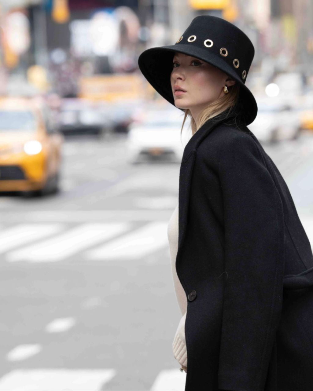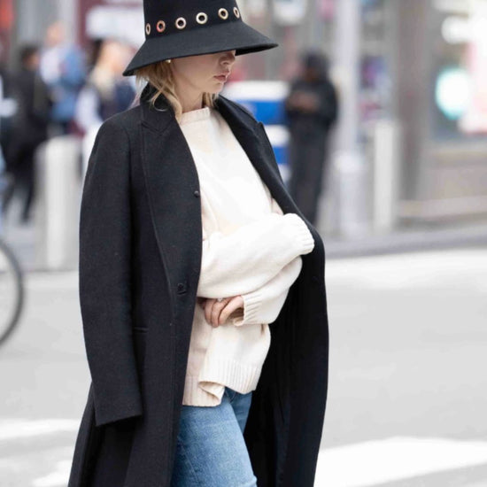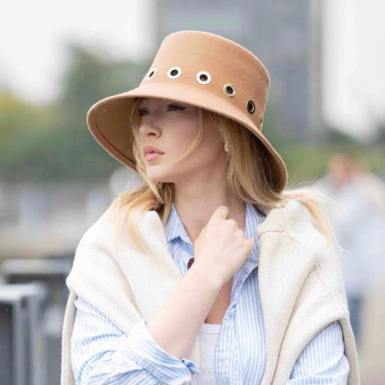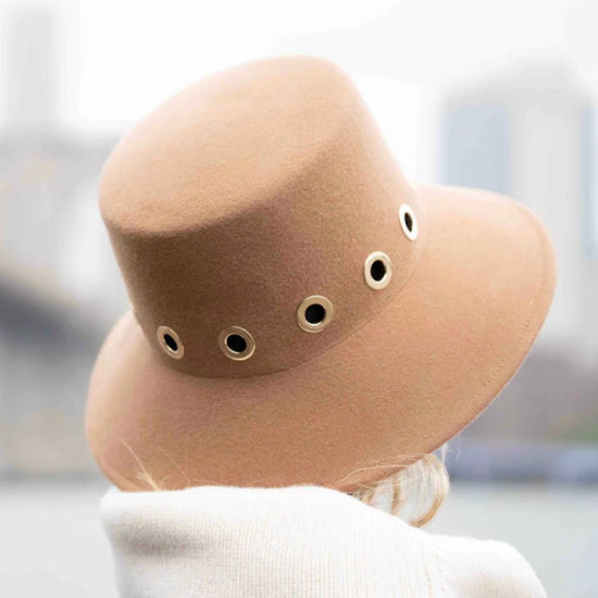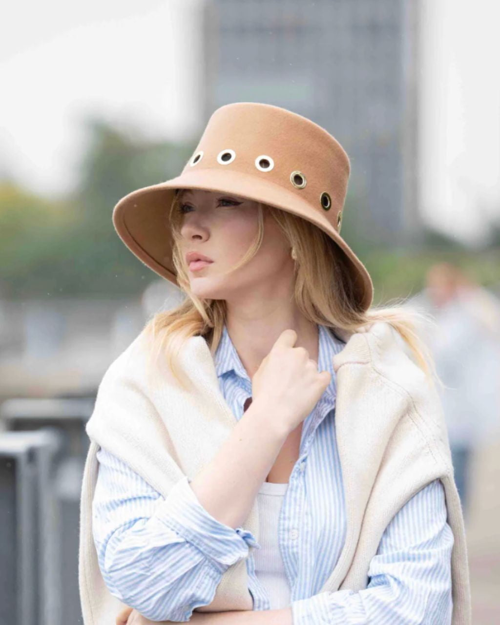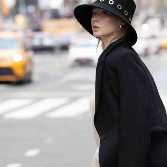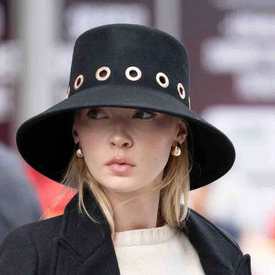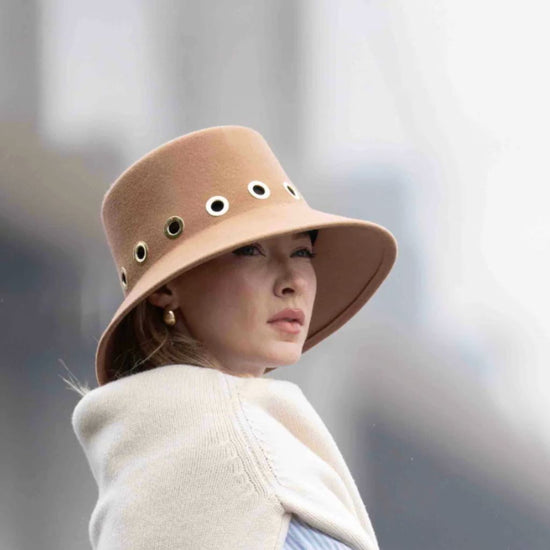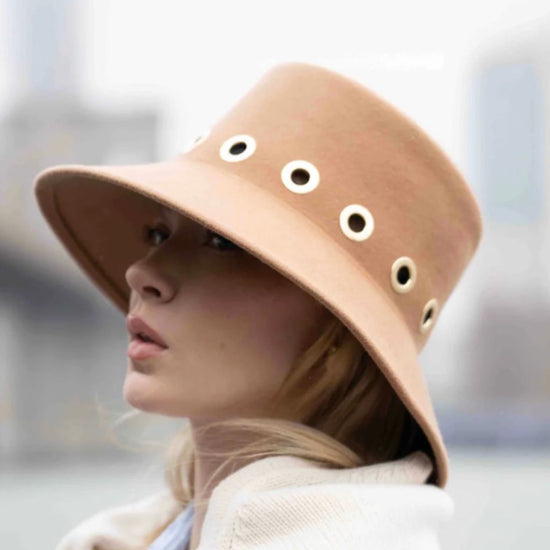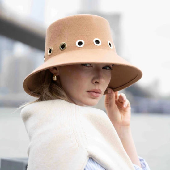 The Courche re-imagines the classic cloche for winter, with gold grommet detailing. Made of water-repellent, 100% felted wool in Italy.