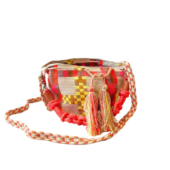 The medium size of the M Crossbody Bag makes it ideal for carrying your essentials in a comfortable and elegant manner. Its crossbody design allows you to wear it over the shoulder or across the body, providing you with freedom of movement while keeping your belongings secure and within reach. In addition to its aesthetic beauty, the Guanábana Handmade bag is a tribute to craftsmanship and fair trade.