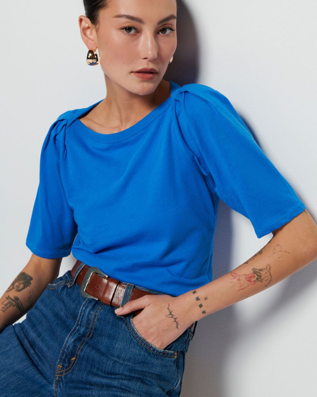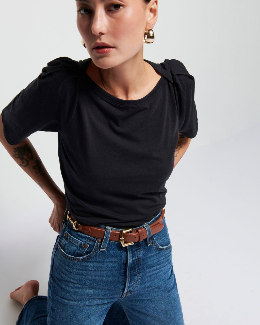 We elevated your everyday tee with delicate feminine details. (It's the easy envelope neckline and chic pleats on the shoulders.) Same boxy short sleeves and relaxed fit you love, but now polished enough to wear to work.