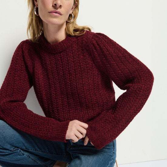 That closet staple cozy pullover you've been looking for? We made it (you're welcome). Mock neck, ribbed hem and cuffs, and balloon sleeves.