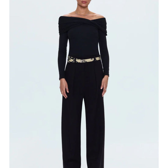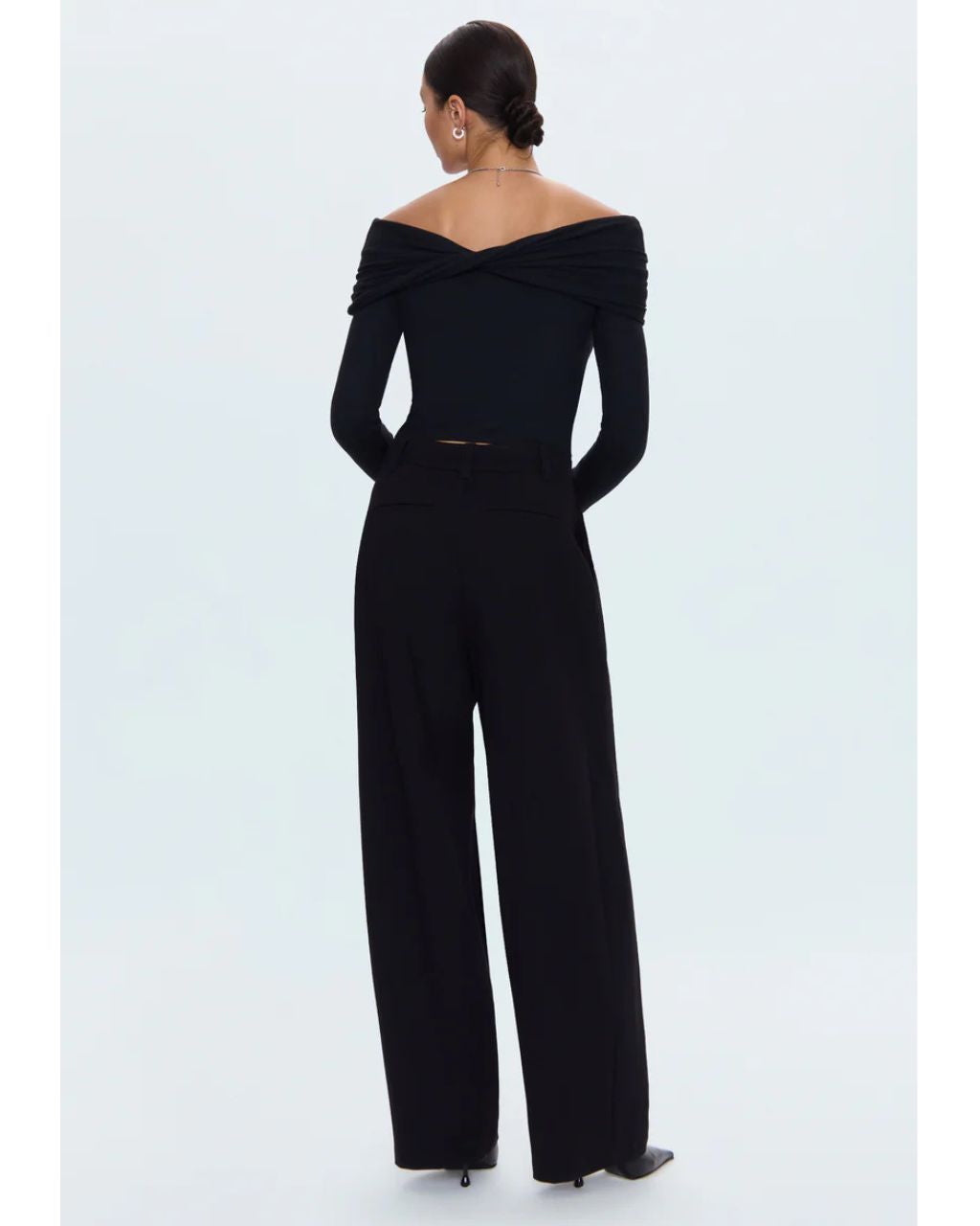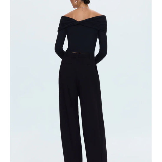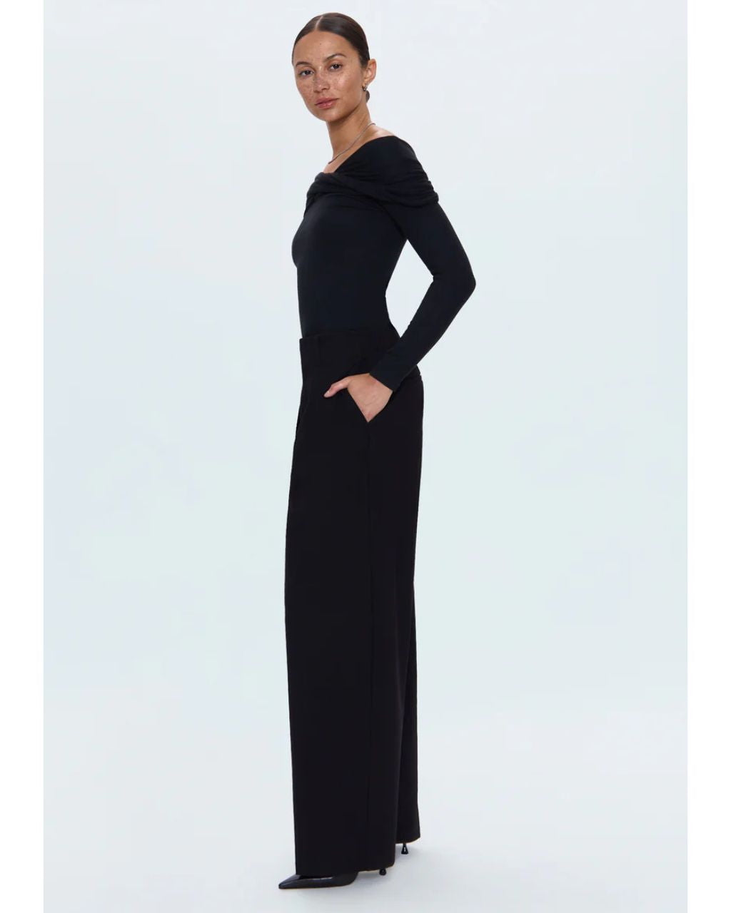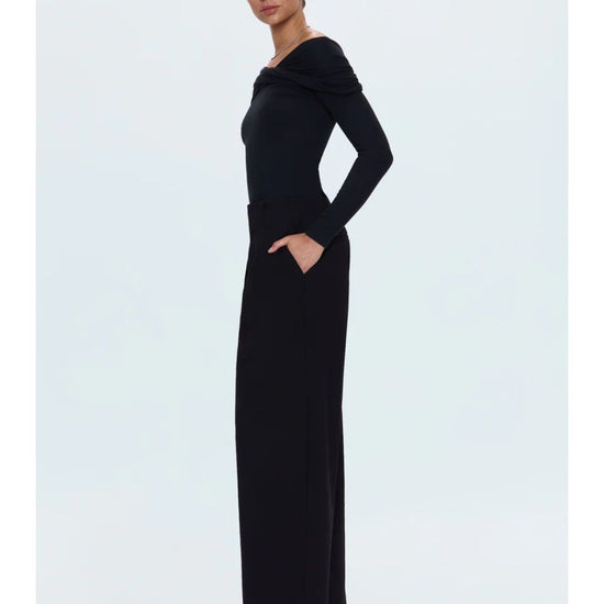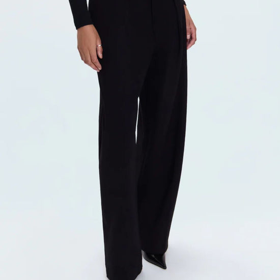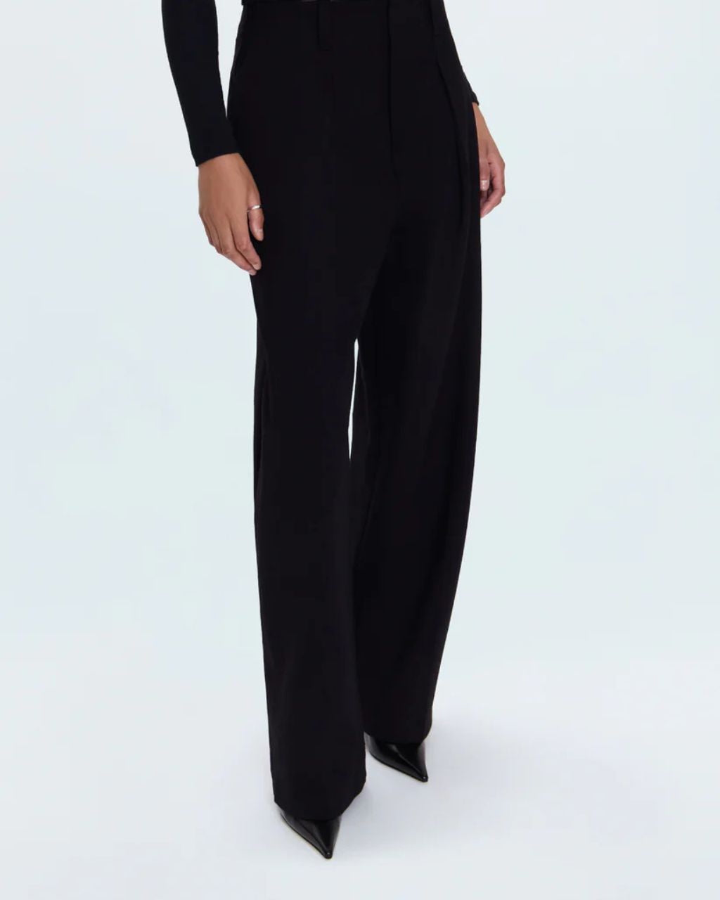A tailored trouser, Eden features a high rise, sharp pleats, and a fluid wide leg for a modern take on classic tailoring. Cut from ponte fabric with subtle stretch, it balances structure and comfort for polished ease. Night Out, a deep black shade, offers timeless versatility from desk to dinner.