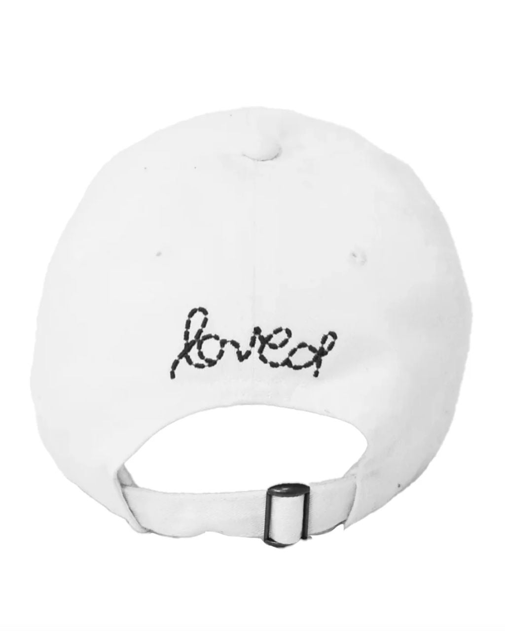 Our best selling Imperfect heart hat is now offered in white with a black heart and Kerri's Kerri's iconic hand stitched loved and imperfect heart Perfect to top off any look. This is part of Kerri's Essentials collection.