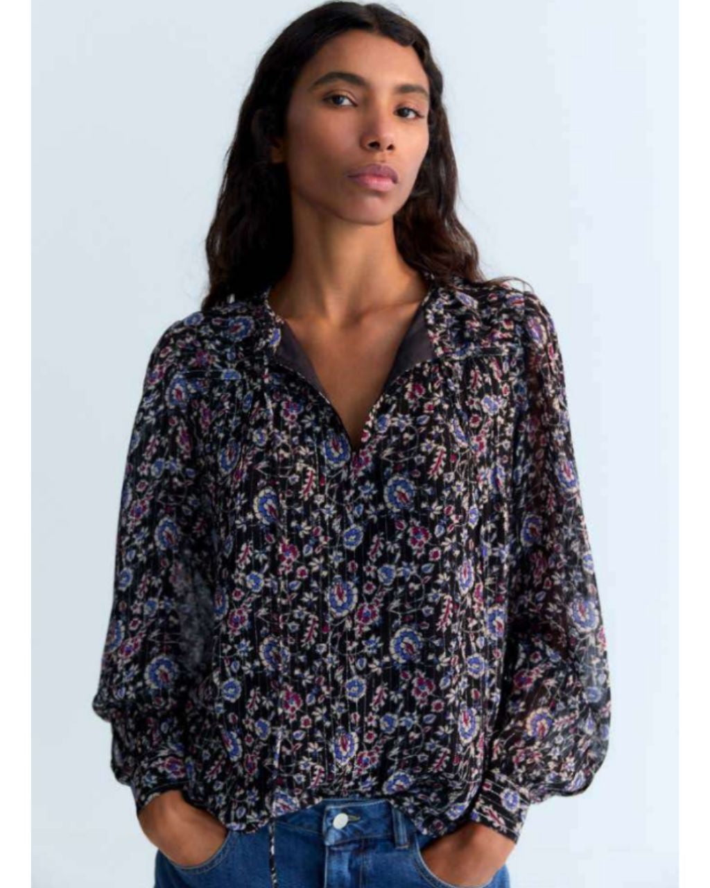 Floaty florals meet chic metallics in this special blouse by The New Society. 97% Viscose, 3% Metallic.