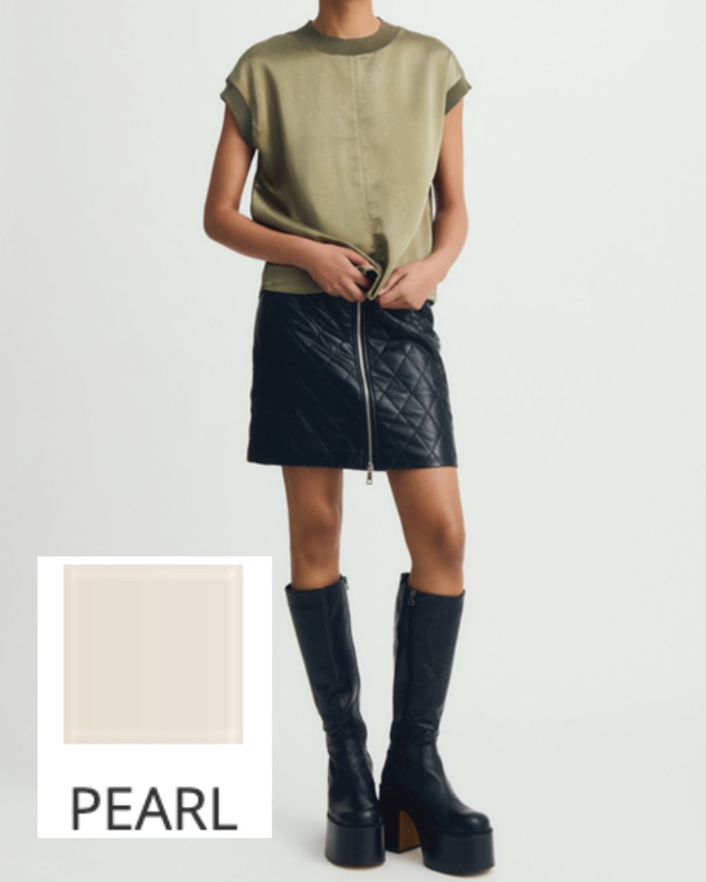 SLEEVELESS SATIN TOP W/ KNITTED TRIMS