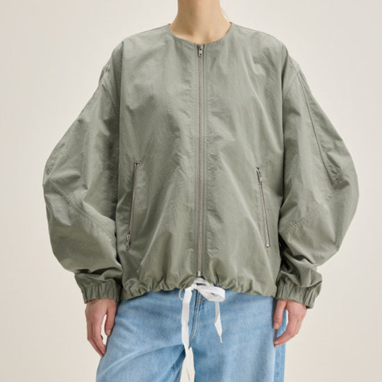 Introducing the Bellerose Helsinki Jacket in Dusty Olive. Crafted with lightweight material, this spring coat offers a stylish look in a versatile color. The zipper closure and tie at the bottom provide a secure fit while adding a touch of elegance. Expertly designed for a comfortable and stylish experience.