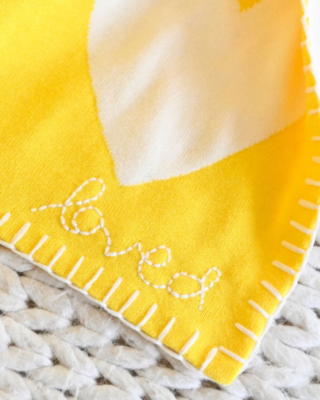Everybody's favorite blanket is now offered in a cotton cashmere blend. This super chic yet casual blanket will live on your family room couch, side chair or the end of a bed. It's also is the perfect gift to give or get. You will want one for every room of the house. Wrap yourself in love! Pick from light grey and off white or bright sunshine yellow and off white.