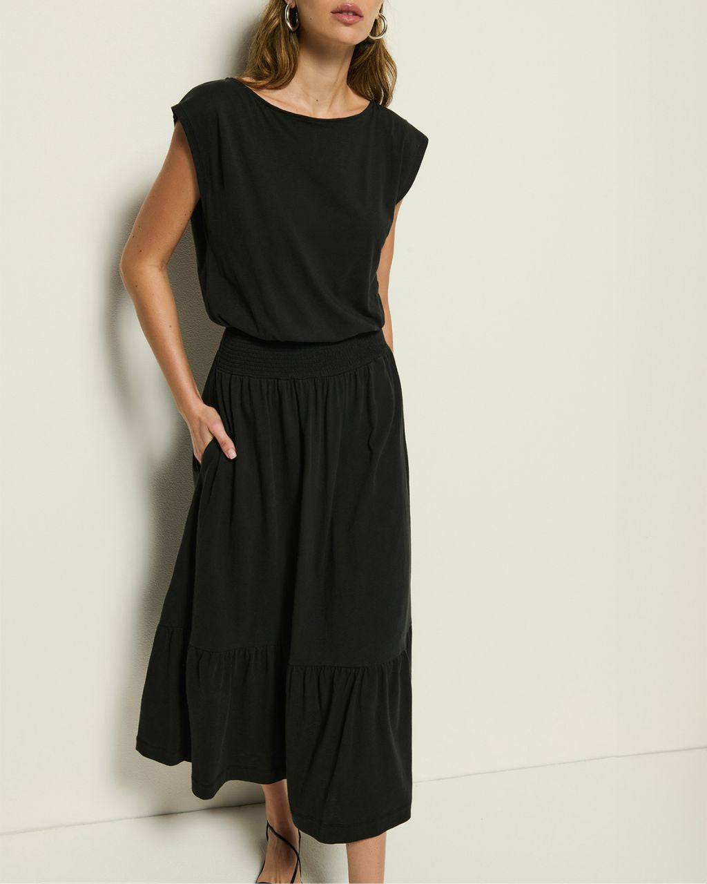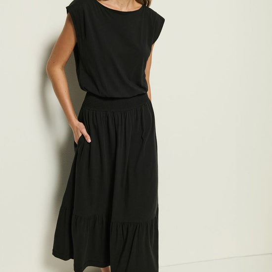 Easy, breezy, this dress is available in Seascape and Jet Black.