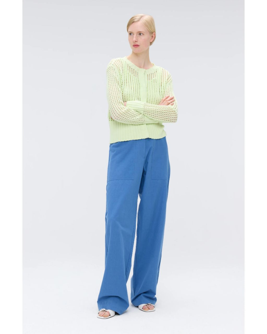 The Kanami Knitwear is a crocheted button-up cardigan that brings texture and style together. Made from a blend of cotton and linen, it offers a lightweight and breathable option perfect for layering.