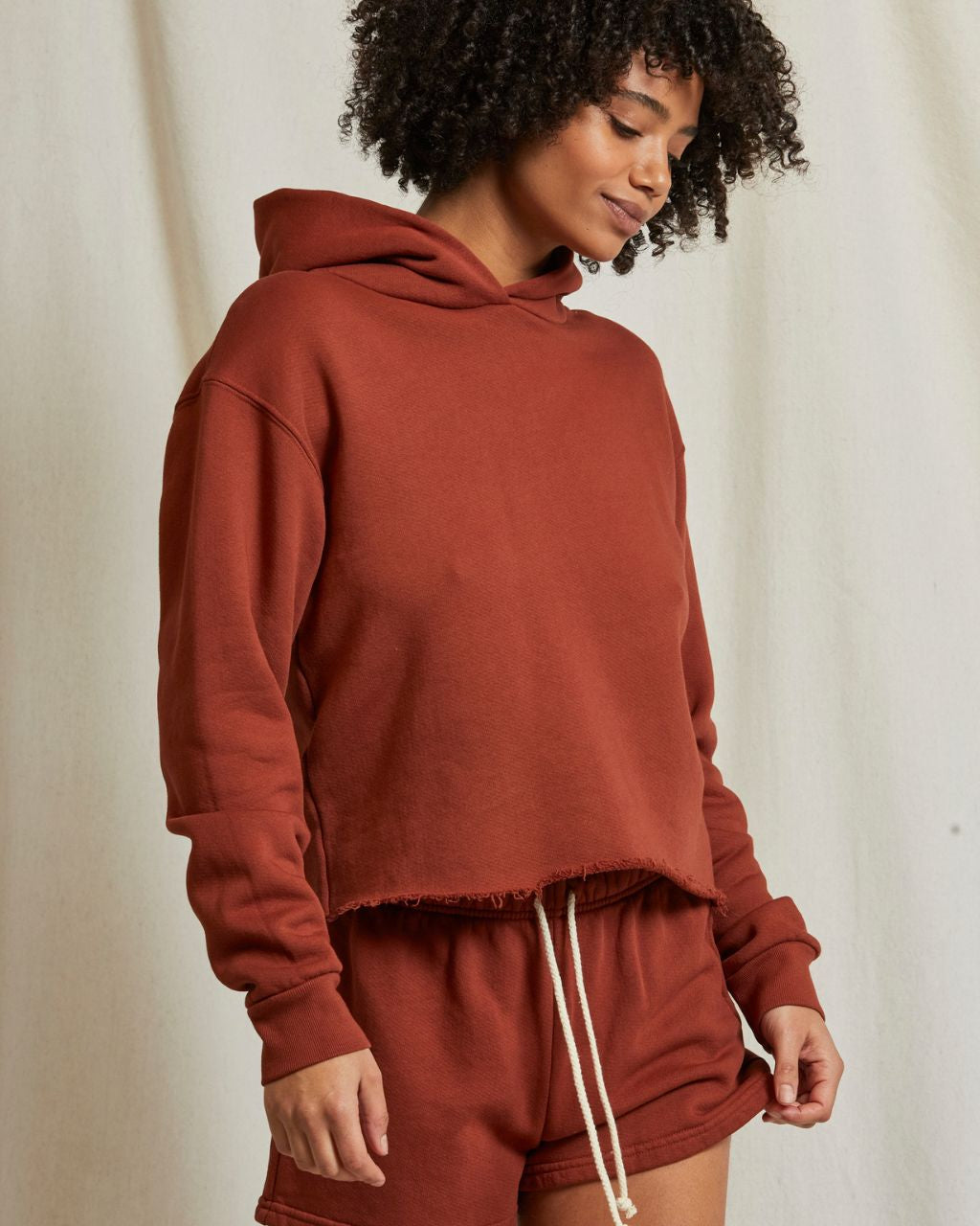 made from our new lightweight fleece called beach fleece. this hoodie is super soft and roomy enough to be comfortable. the perfect fit, with a cut off raw hem at the bottom. throw it on over a day at the beach for cool summer nights.