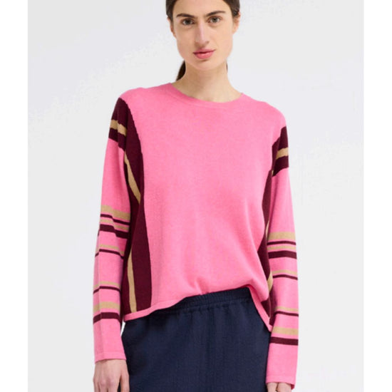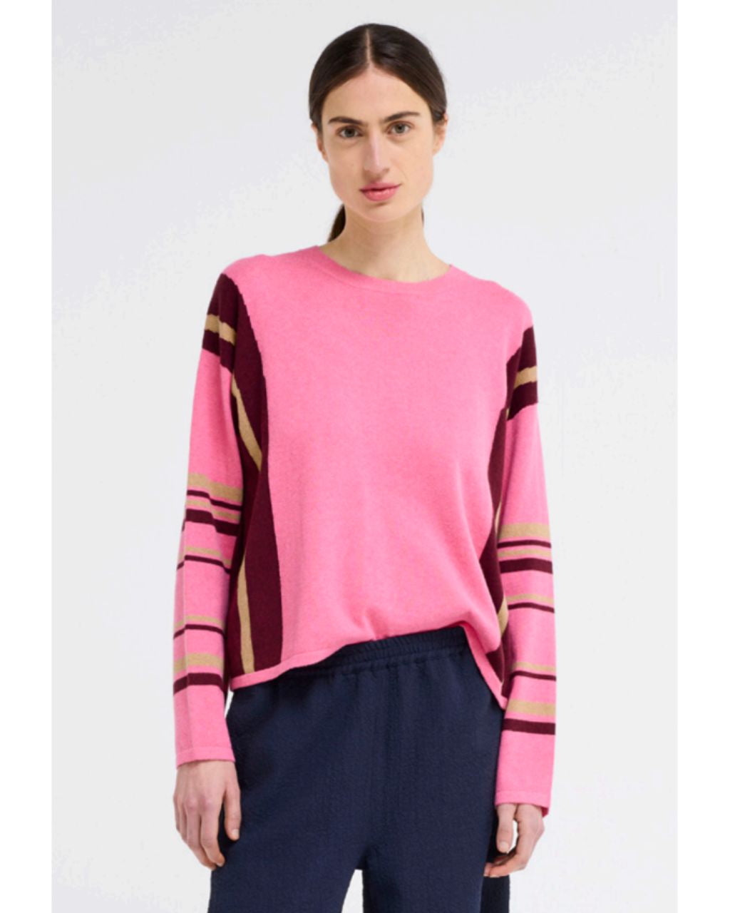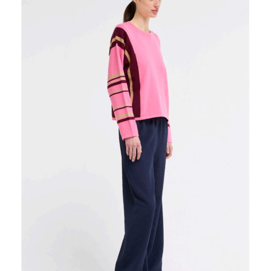 A clean silhouette with bold striped detailing along sleeves and sides. The Kor Knit adds visual depth while staying soft and wearable.