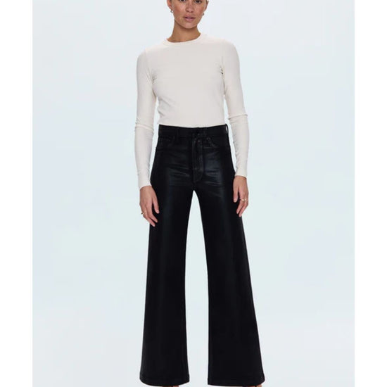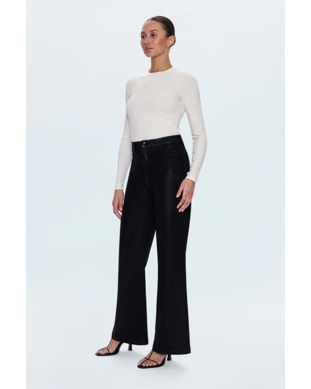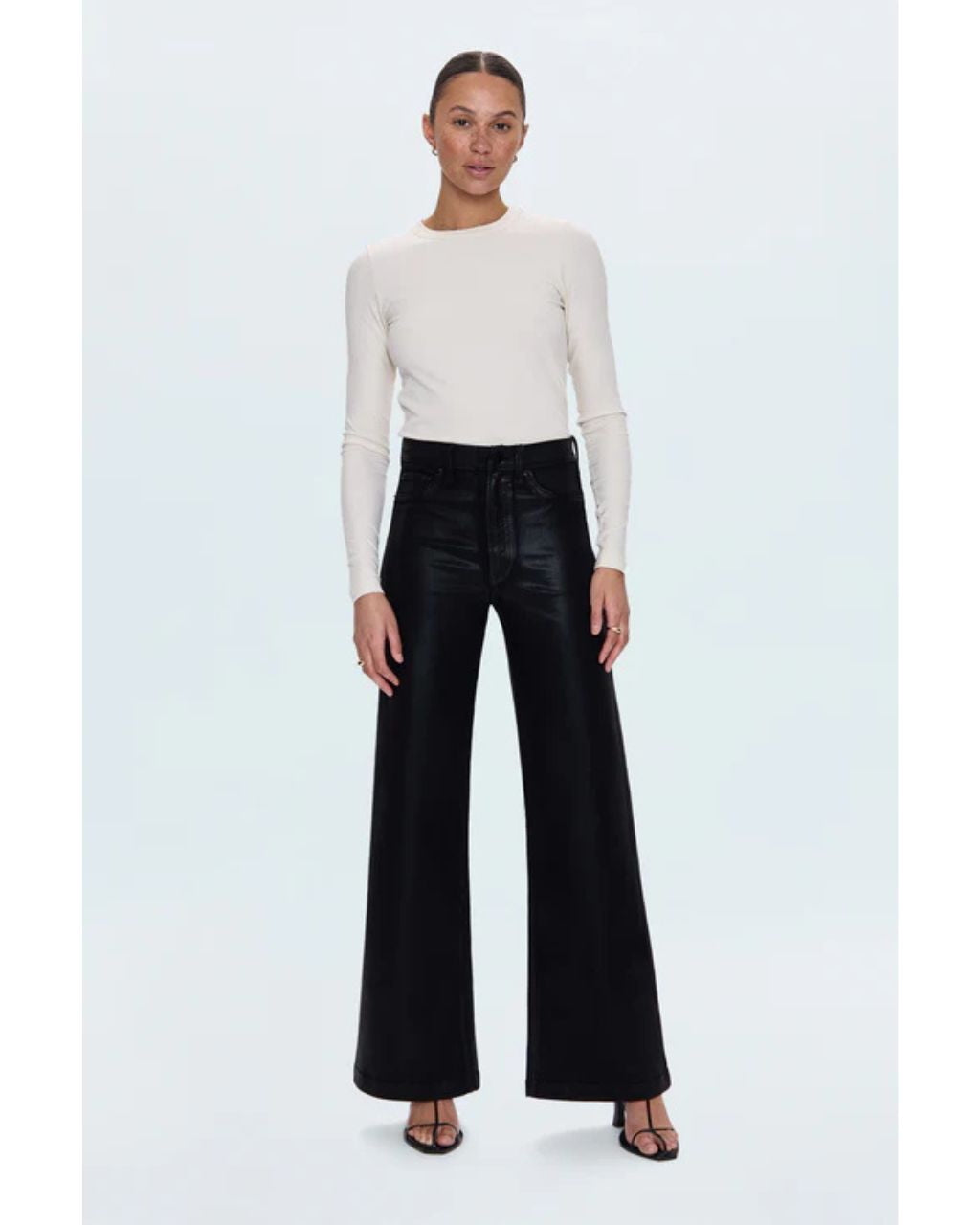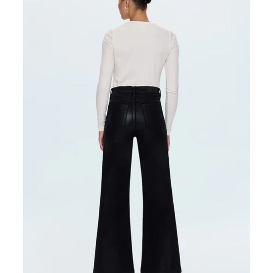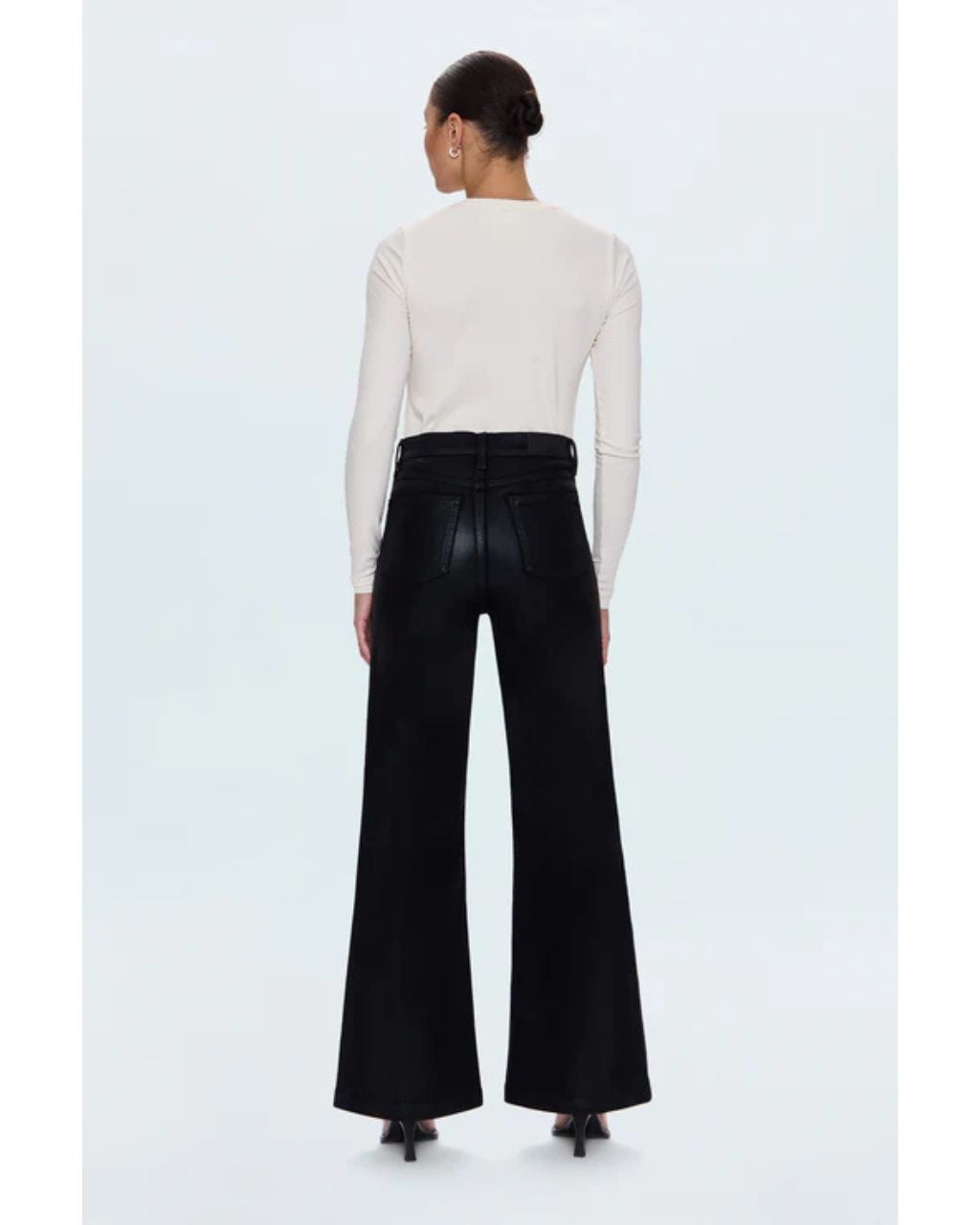 The best-selling wide leg that commands the room. Lana sits at a high rise with an ultra wide leg silhouette and full-length 33" inseam that feels effortlessly dramatic. The ultra wide opening creates maximum impact while the relaxed fit flows beautifully. Crafted from our signature comfort stretch denim in Coated Noir, a rich black finish with luxurious coated texture.