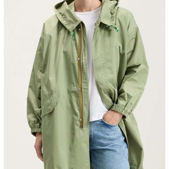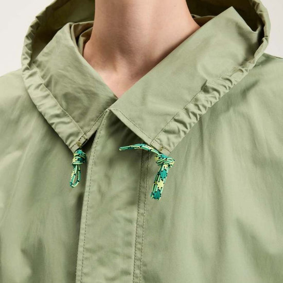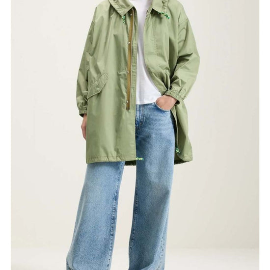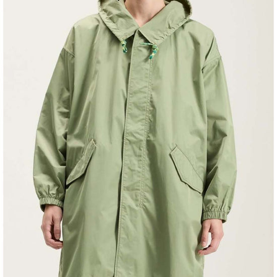 The Bellerose Laos Coat is the perfect outerwear piece for all occasions crafted from a water-repellent polyester and cotton blend with contrasting details. The Laos Coat comes unlined and features an oversized shape, dropped shoulders, handy slash pockets, a large hood, a zip front, adjustable drawstrings around the hood and hem, and a slightly high-low hemline.