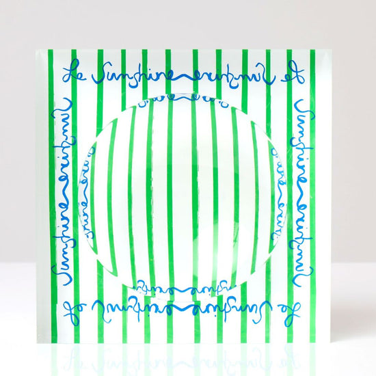 This decorative bowl, inspired by Kerri's 'Le Sunshine' artwork, is perfect for candy or simply as a standalone art piece. It adds a fun touch to any coffee table and makes for a great gift or collectible.