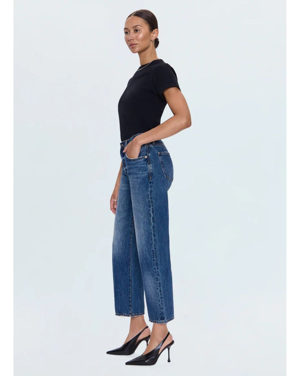 The best-selling jean that understands proportions. Lexi sits at the perfect mid-rise with our signature bowed straight leg, and a subtle curve at the knee that creates dimension without effort. Finished with a 29" inseam, the silhouette tapers to a cropped ankle with a clean hem. Crafted from our rigid denim in Artisan, a rich dark wash with gentle fading around the knees and thighs.