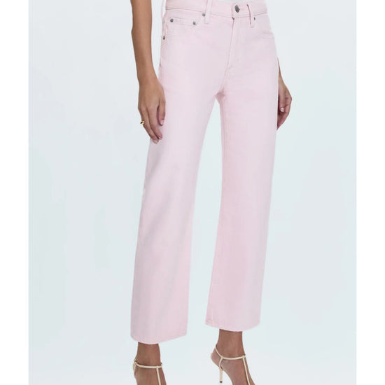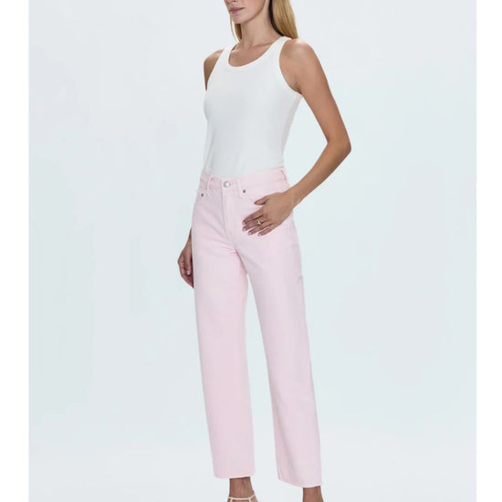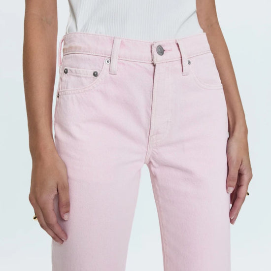 In our soft Blush pink denim, these jeans add a touch of feminine color to your wardrobe. The cropped ankle length and clean hem make them perfect for showcasing your favorite shoes.