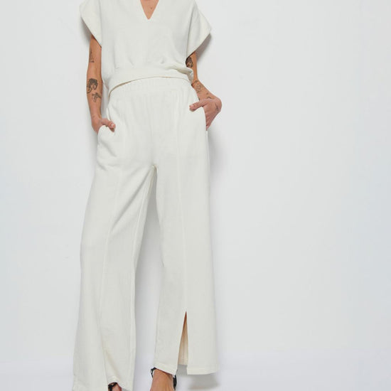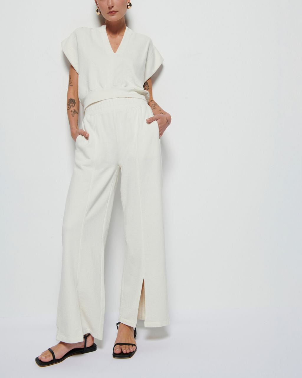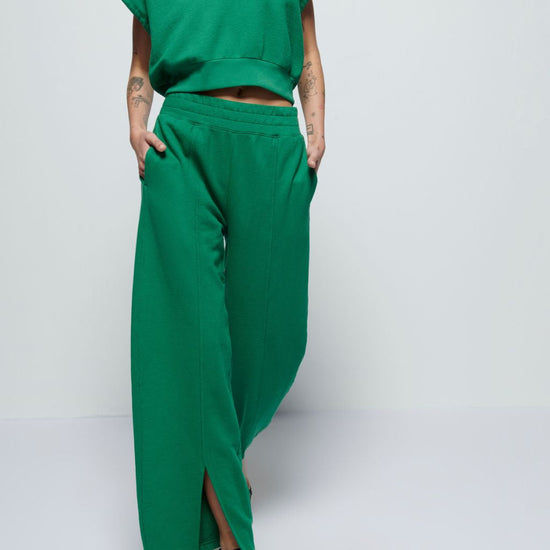 Proof that casual can look chic (all summer long). These chic sweatpants have an easy, elasticized waistband and seamed details with front slits on the hem. Feels effortless, looks ready for whatever the day brings you. Make it a set with the Lenon top. (This one comes in Verdant Green and Porcelain.)
