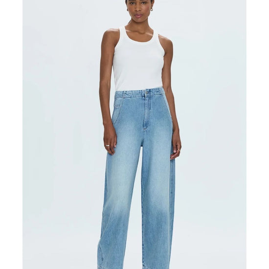 Designed for style and comfort, the Lottie bowed leg jean by Pistola features a high-rise fit, angled front pockets, and soft, lightweight denim that drapes beautifully for an effortlessly chic look.