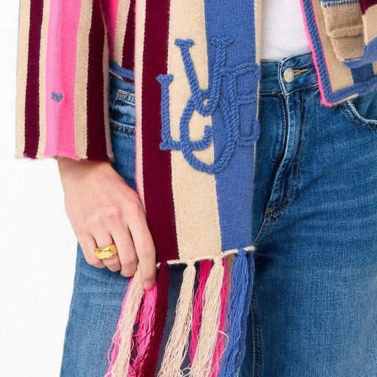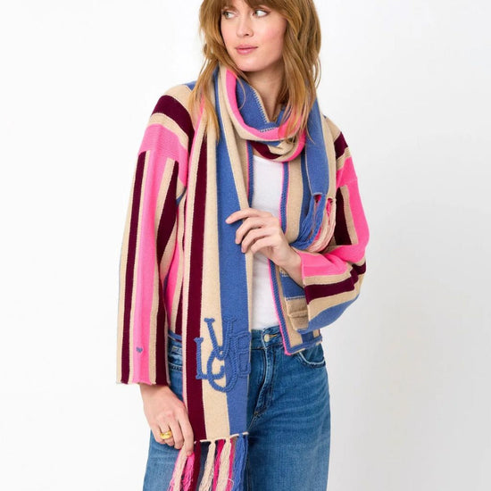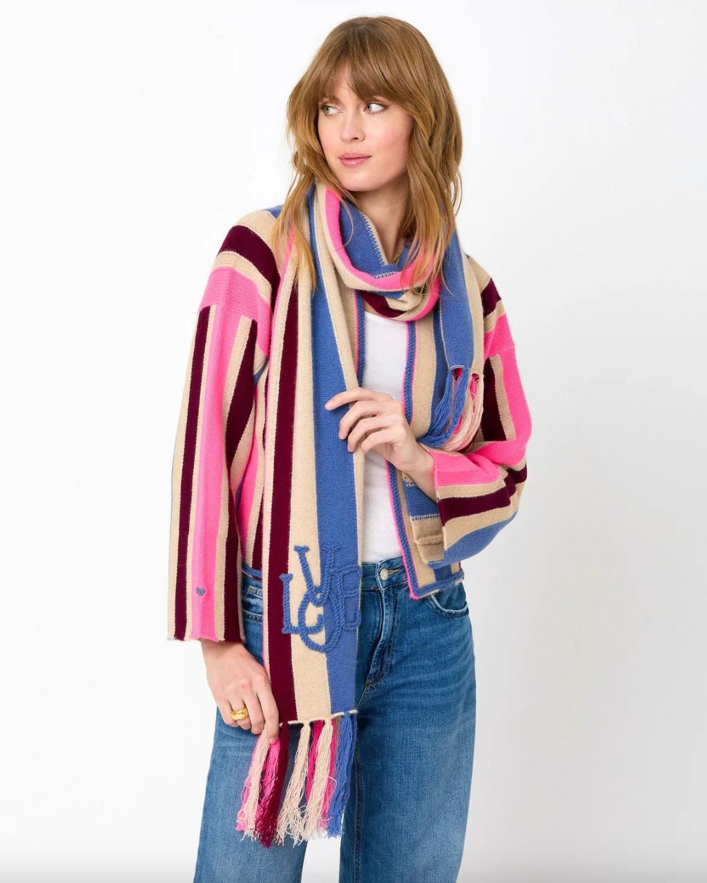 We're loving our Lovgo Stripe Scarf! The Lovgo features a stripe in jersey stitch with detailed braided trim, this is the perfect pop of color for any look. Pair with our Beau Cardigan for a chic matched set.