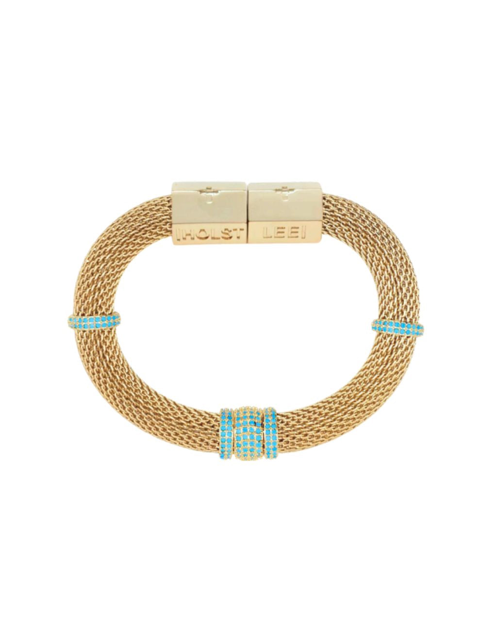 Brass mesh filled 18K Gold, Gold Filled Parts with Rhinestones, Enameled Brass, Signature Magnetic Clasp.