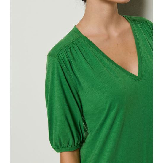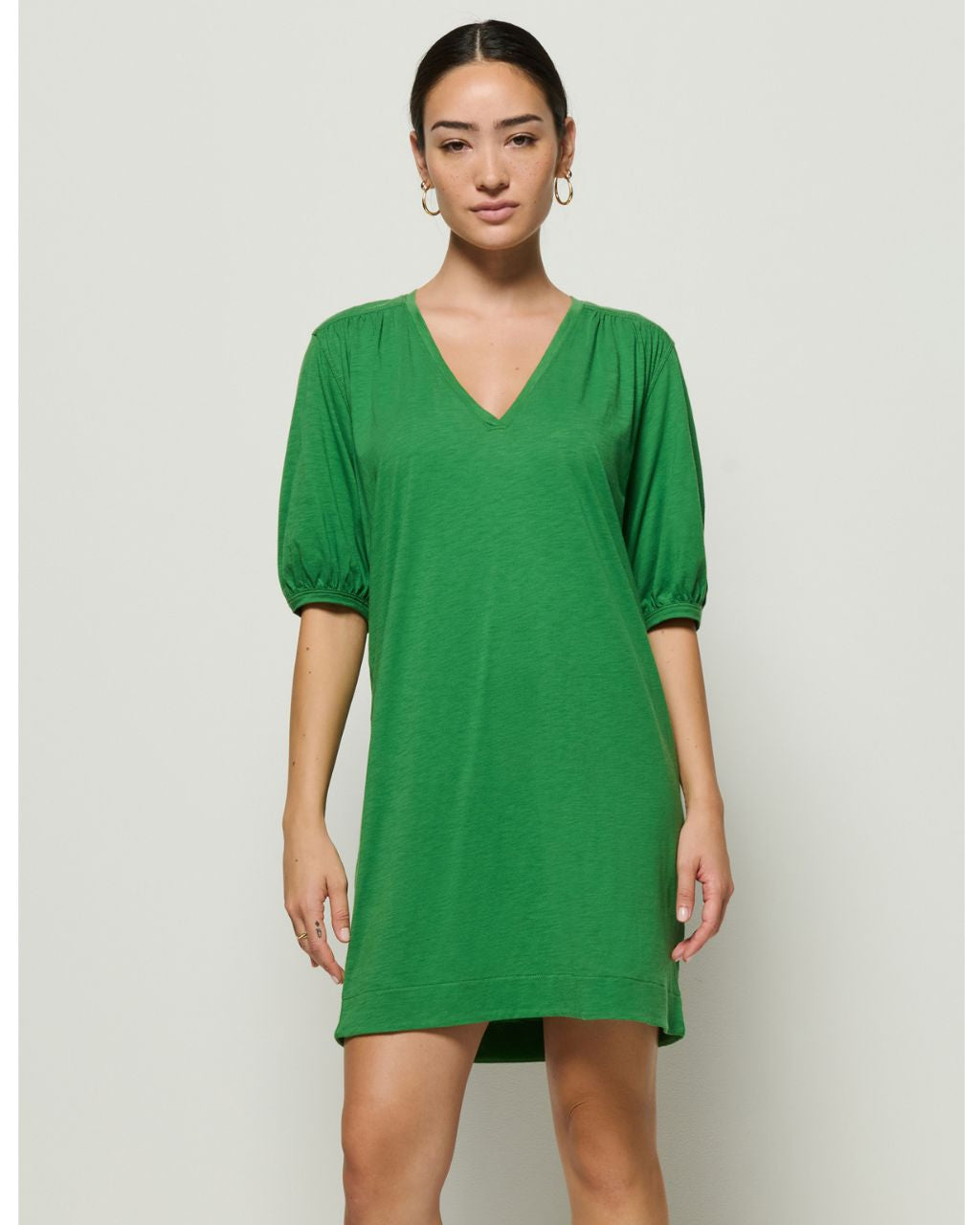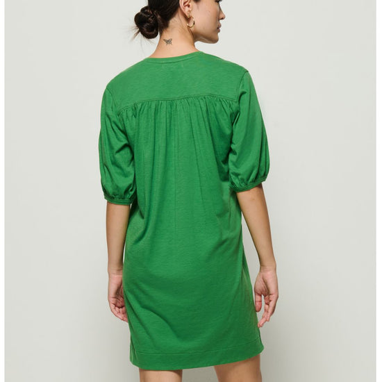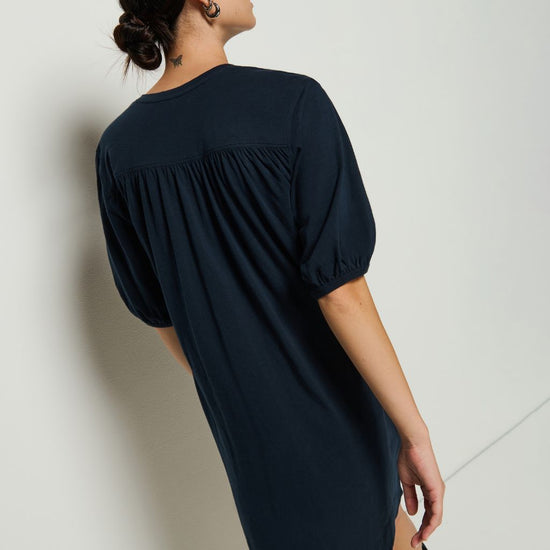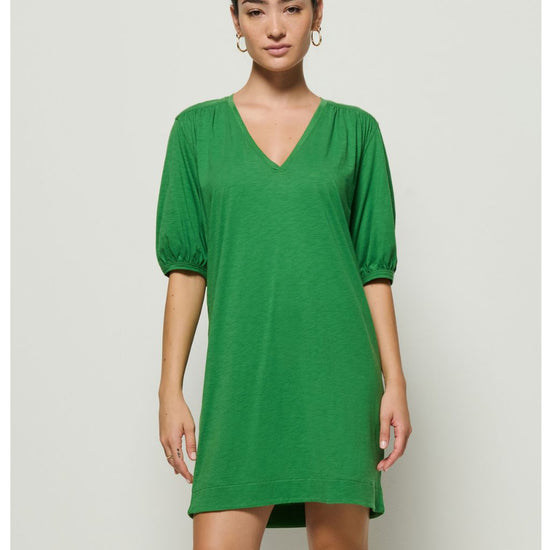Sometimes, simplicity says it all. This one certainly does the talking with a V-neckline, shirred forward shoulders, and short bubble sleeves. Style it up with your tallest boots or keep it casual with your cutest flats. This one comes in Green Lawn and Night Sky.