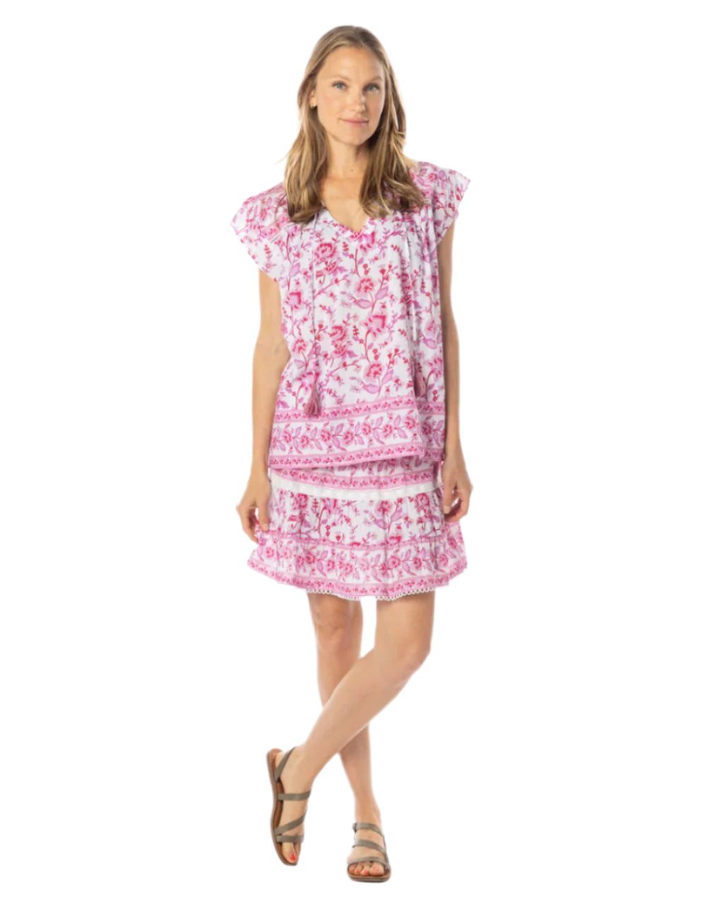 Our Martina Top is ideal for any casual look. V-neck and ties to wear open or closed and sleeveless so you can wear on hot days. Pair it with jeans, shorts or our matching clarita skirt.