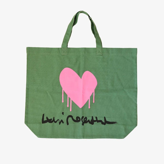 Reduce, reuse and recycle! Shop and repeat with our Merci Tote. Lightweight cotton and just a fun pop of Drippy Heart Love. Grab when you're running to the market or for just about anything else.