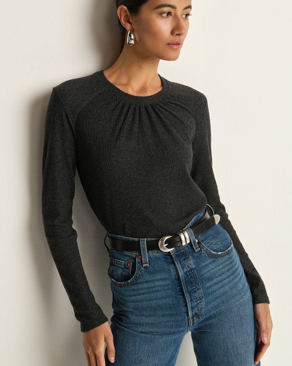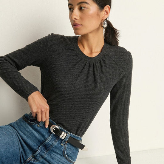 The Alejandra Long Sleeve blends classic comfort with a fine-tuned, fitted silhouette—cut in our signature fit with subtle shirring and yoked shoulders. Soft banded details add gentle structure that moves with you.