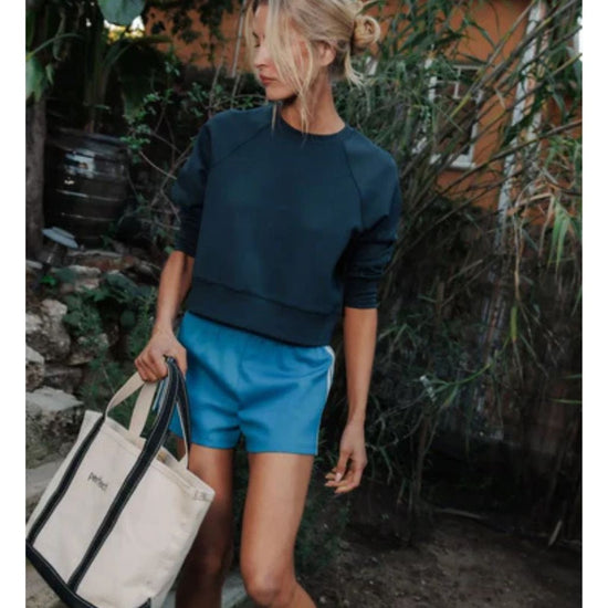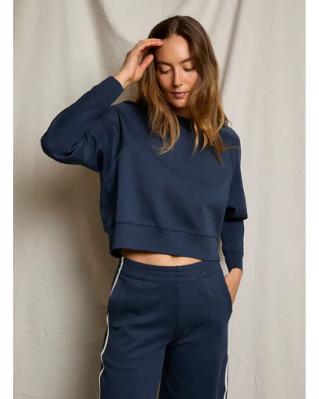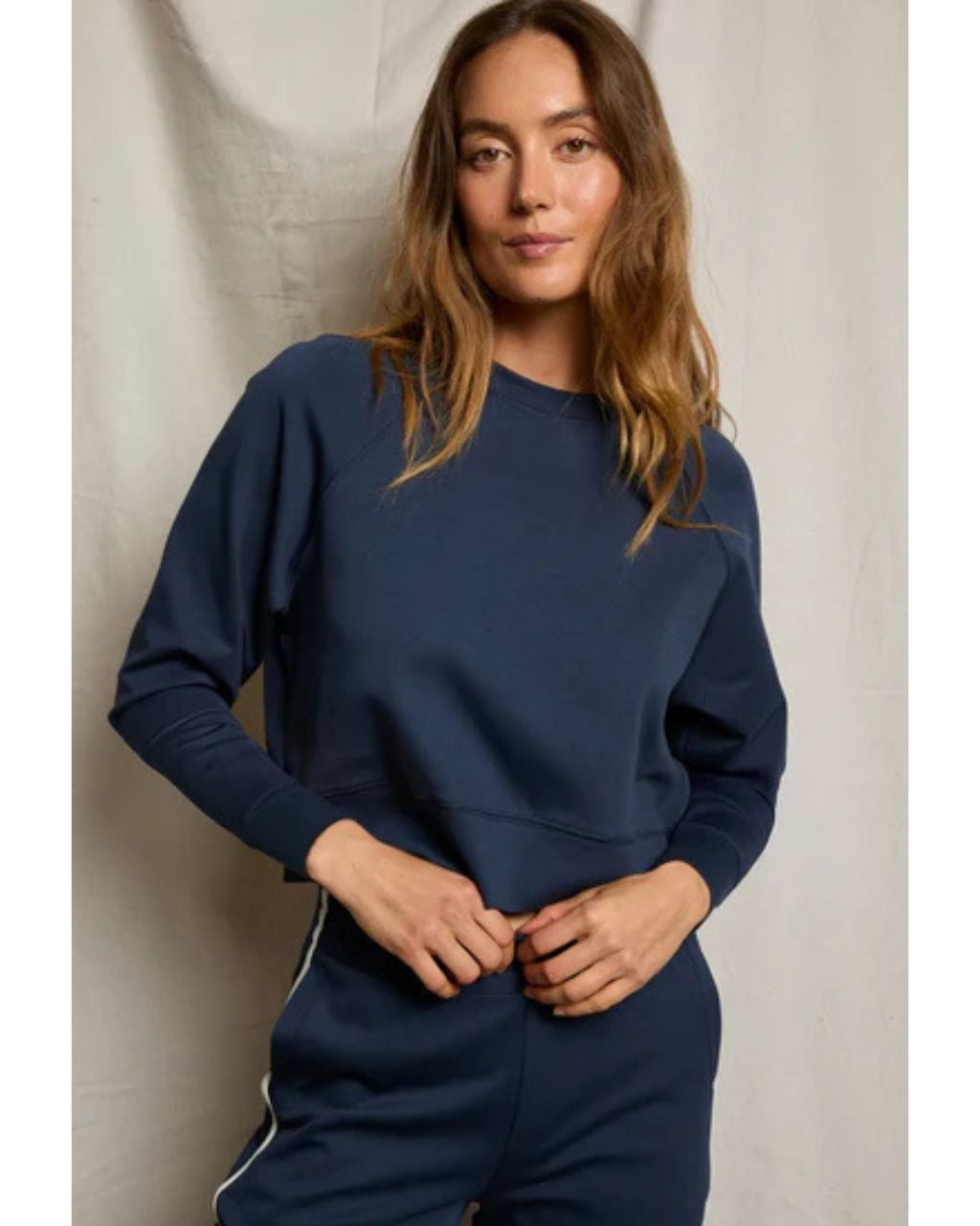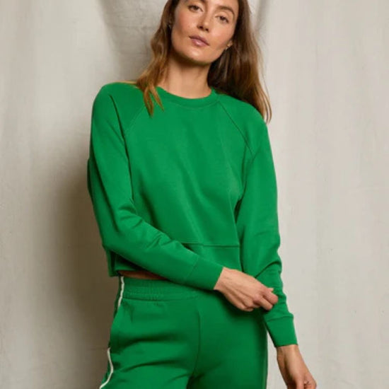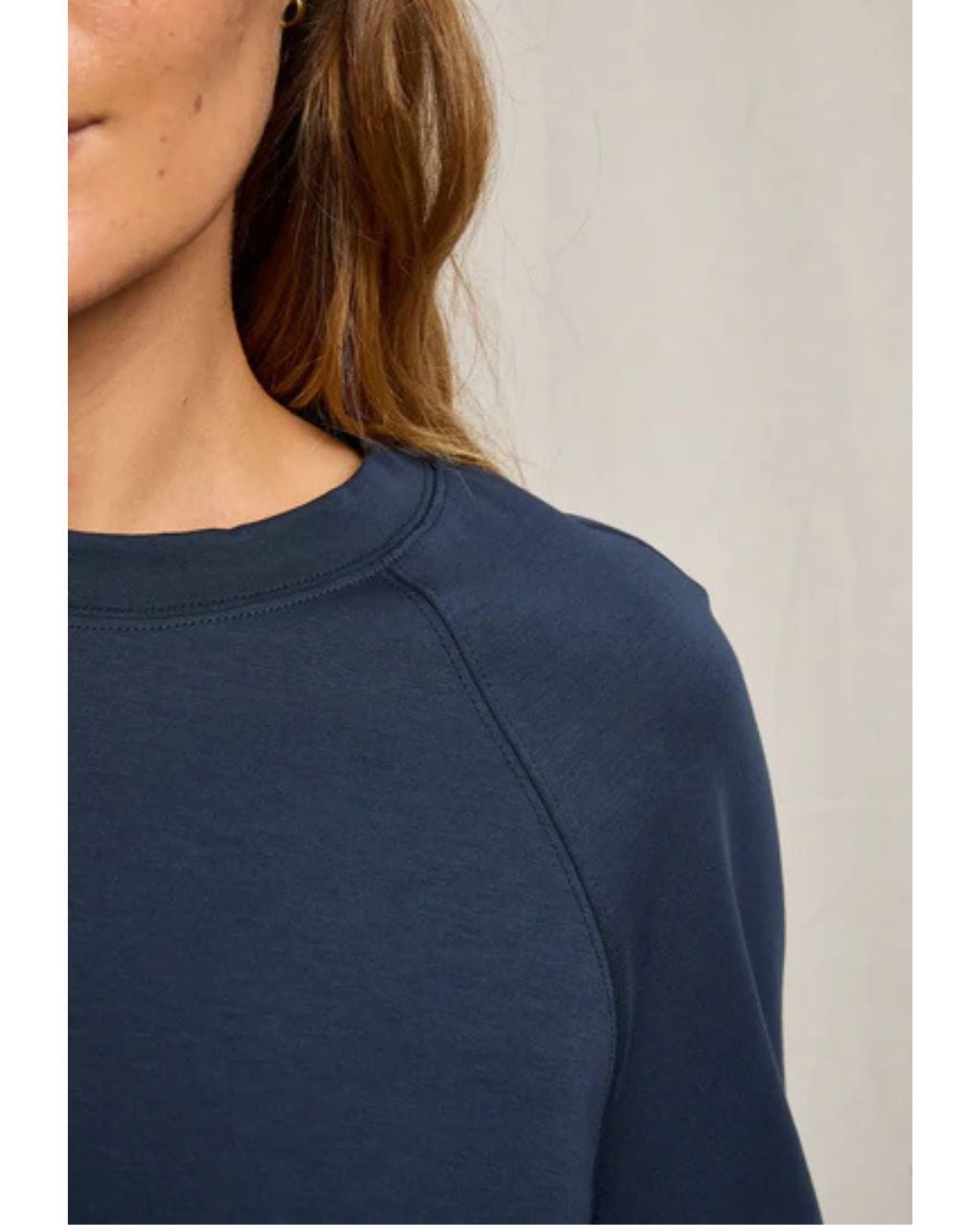 the nell is your new favorite throw-on-and-go sweatshirt, designed with a slightly cropped length and modern raglan sleeve. made in our soft and structured travel fabric, it’s equal parts comfort and polish. from long-haul flights to quick coffee runs, this lightweight crew is always in your rotation.