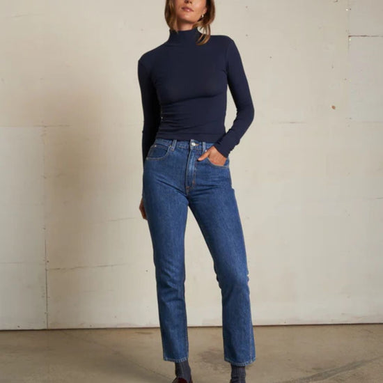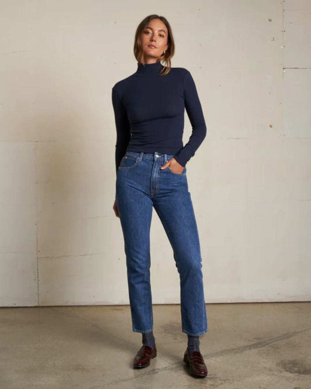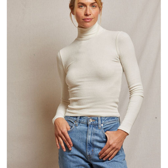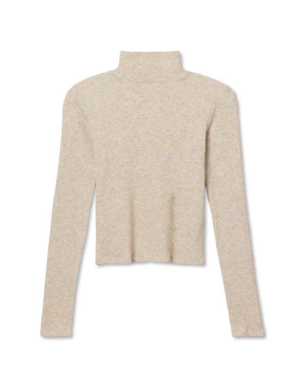 the most beautiful wardrobe staple you will add to your collection this season. cut in our soft loose knit sweater rib, this turtleneck silhouette is equally suited to layer or shine as a stand alone piece.