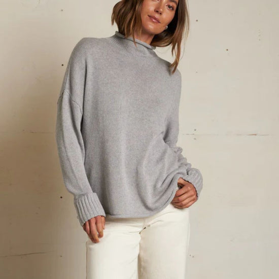 the nova sweater is crafted from our new cotton-cashmere blend, designed for a soft hand feel with just the right amount of warmth. this full-length silhouette hits at the hips and features a stylish roll-neckline that keeps you warm without the weight of a traditional turtleneck.