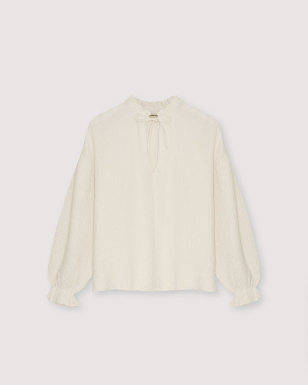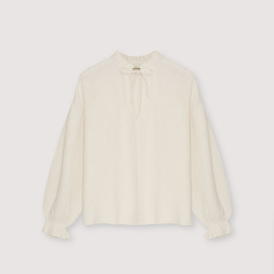 Our classic Olivia Blouse, crafted from soft and breathable double gauze fabric, is a timeless wardrobe staple. Designed with puffed sleeves and a front keyhole detail with a delicate tie closure, it adds a charming touch to any look. Available in a variety of colors to suit every style and season.