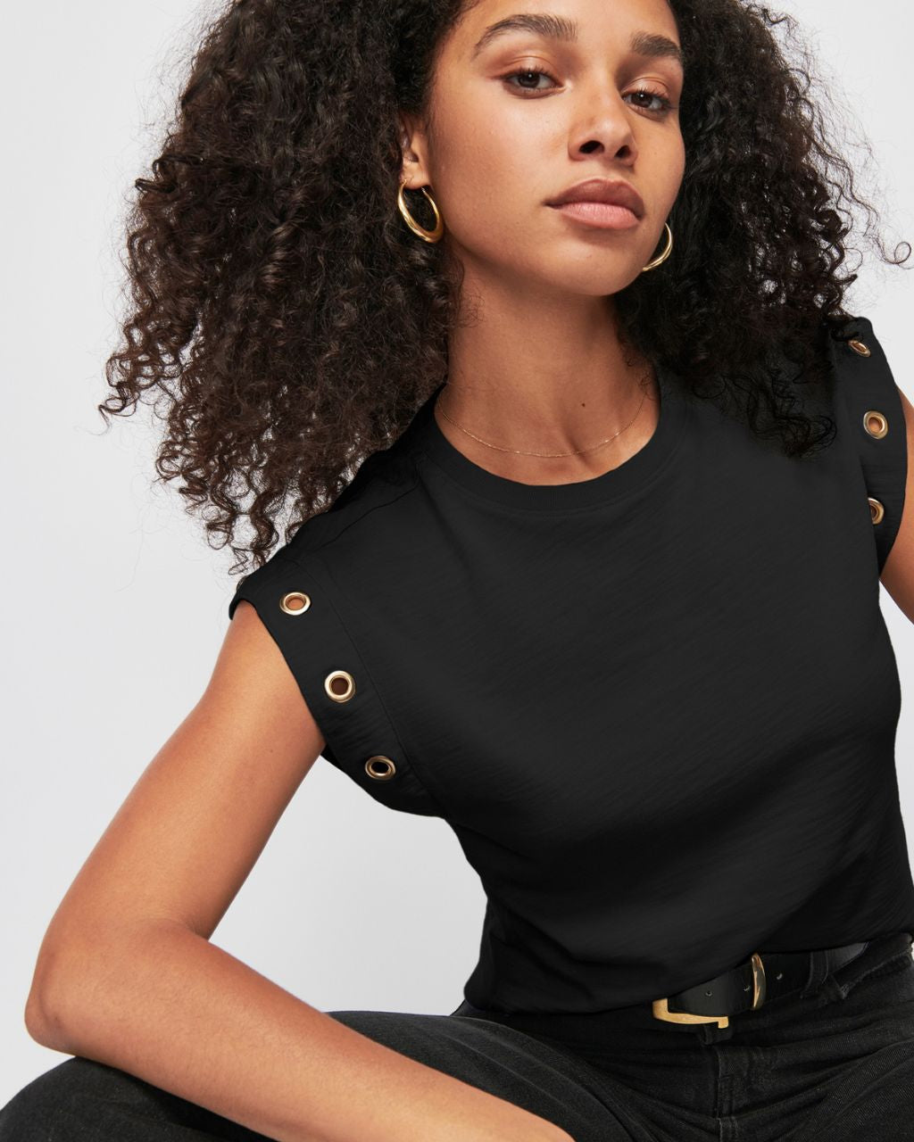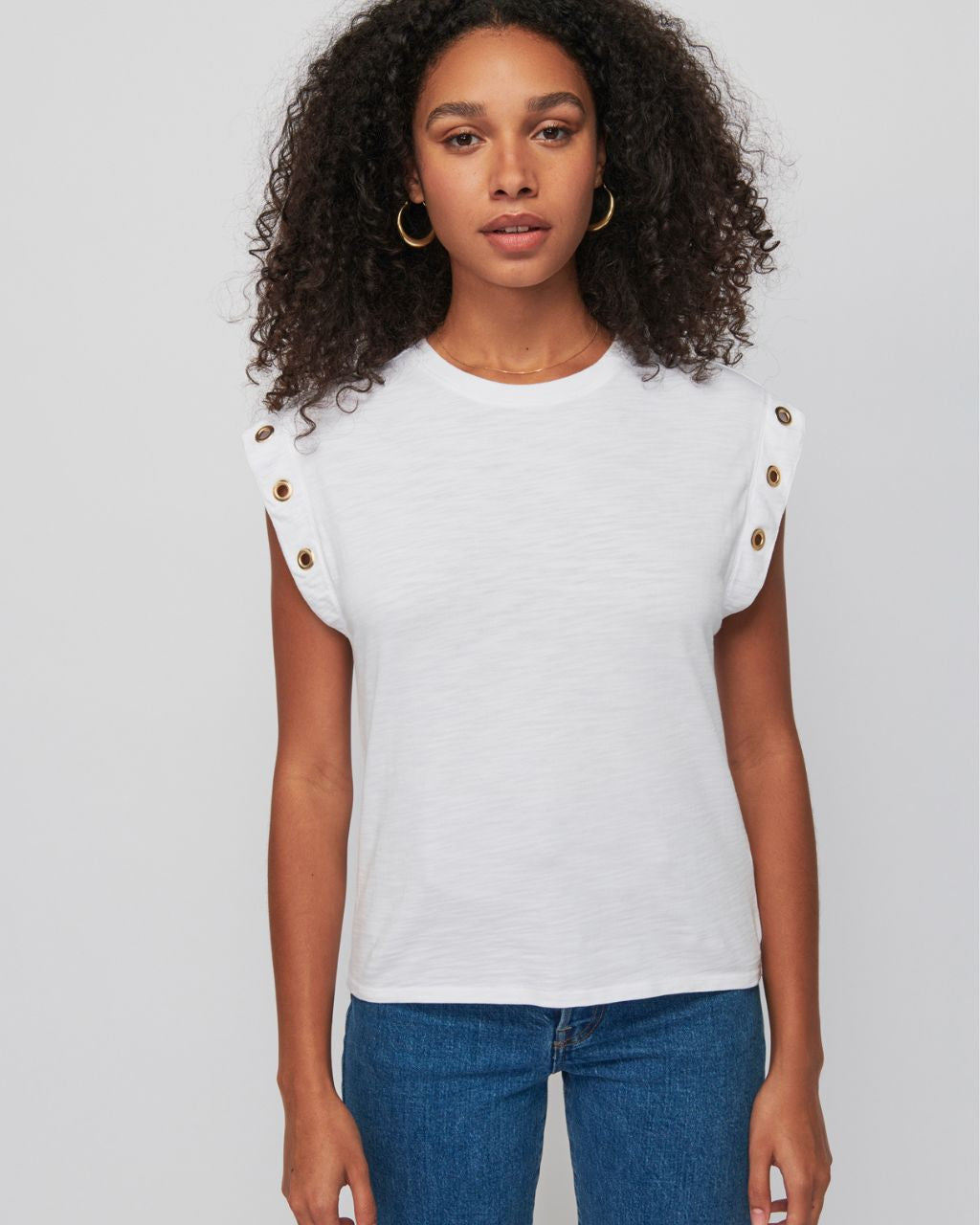 A classic muscle tank with an unexpected edge, this Nation LTD tee is crafted in a comfortable cotton and features a relaxed fit, grommets along the sleeves, and a crew neckline. This one comes in Optic White and Jet Black.