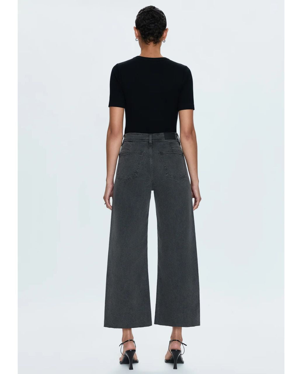 High rise waist, with a wide leg silhouette and a cropped, ankle length hemline. Crafted from our signature comfort stretch denim, with a double stitched waistline and scissor cut hems.