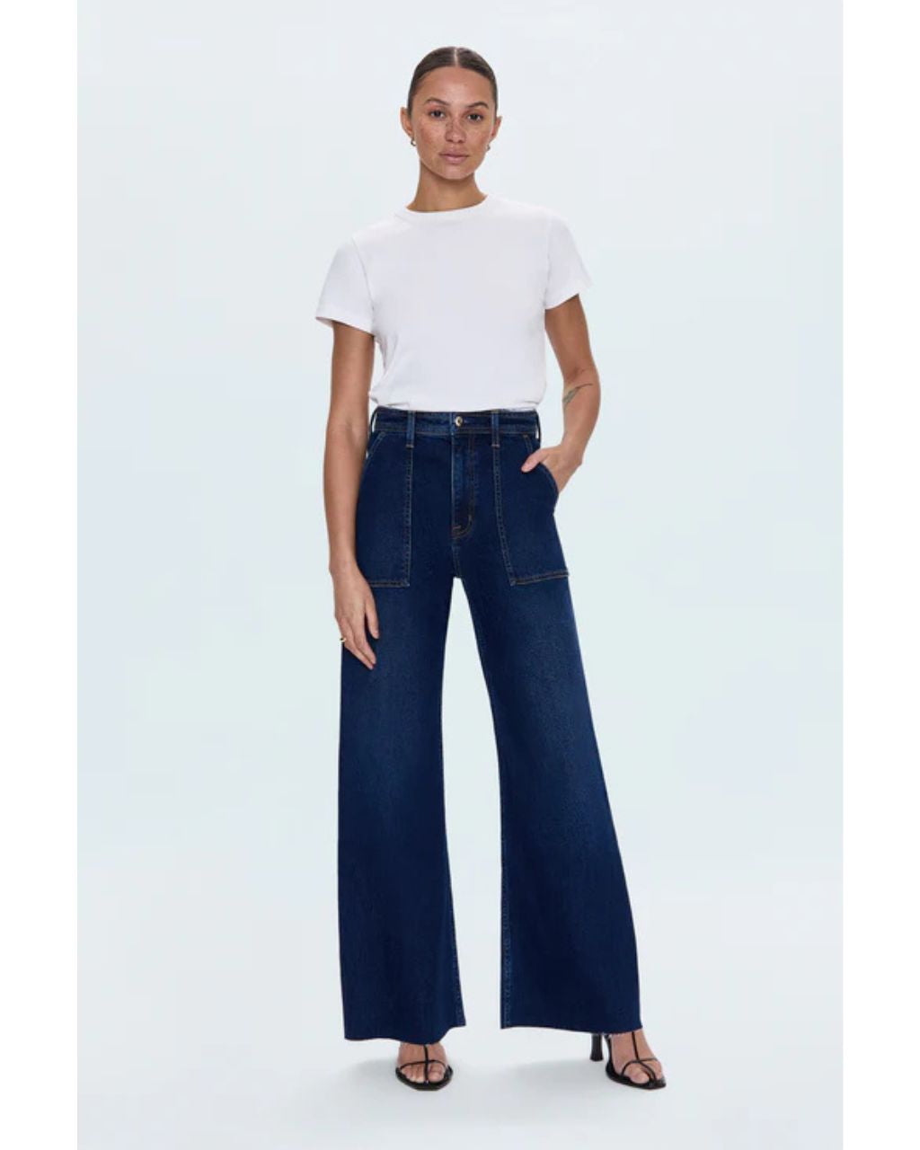 The wide leg that changes everything. Penny sits at a high rise with an ultra wide leg silhouette and full-length 28" inseam. The relaxed wide leg flows beautifully while the high rise anchors the proportions perfectly. Utility-inspired details add functional appeal to the contemporary silhouette. Crafted from our comfort stretch denim in Calluna, a deep indigo wash.