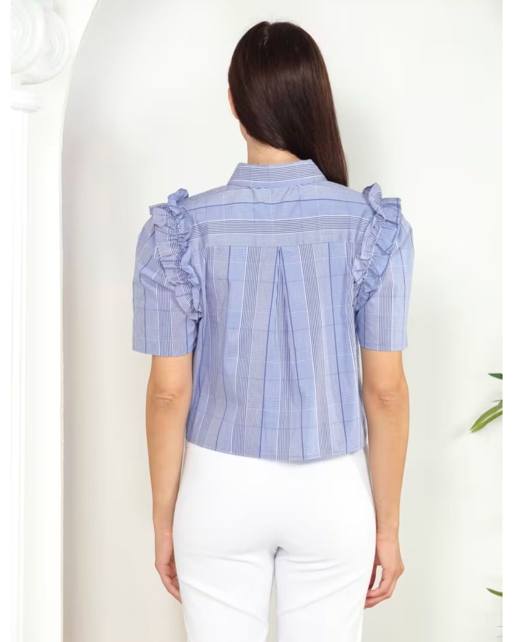 Plaid Ruffle Short Blouse