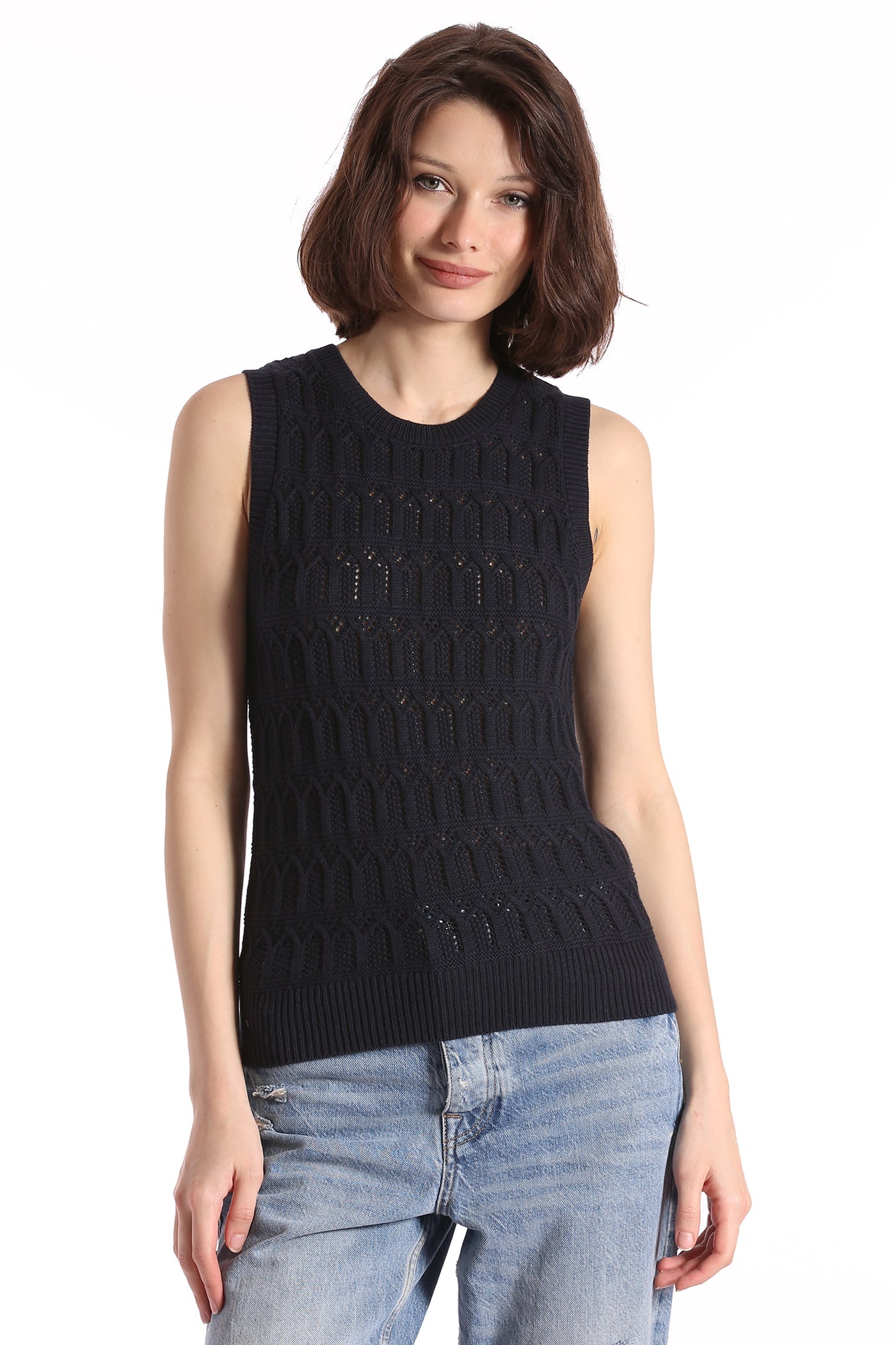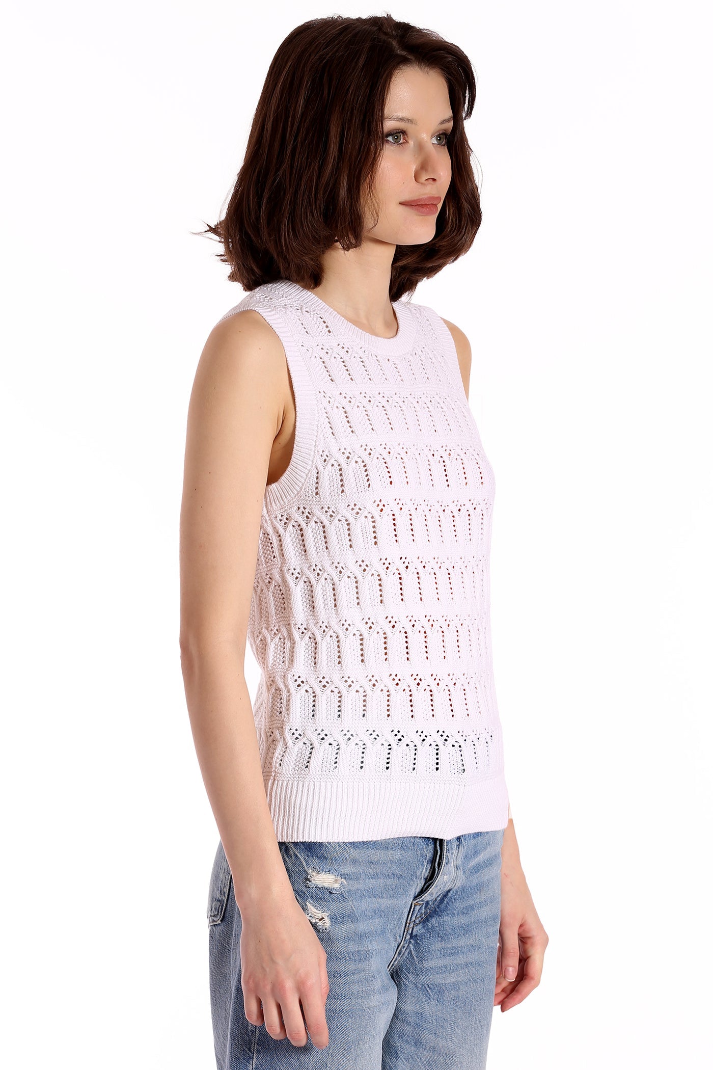 Pointelle Cotton Cashmere Sleeveless Top