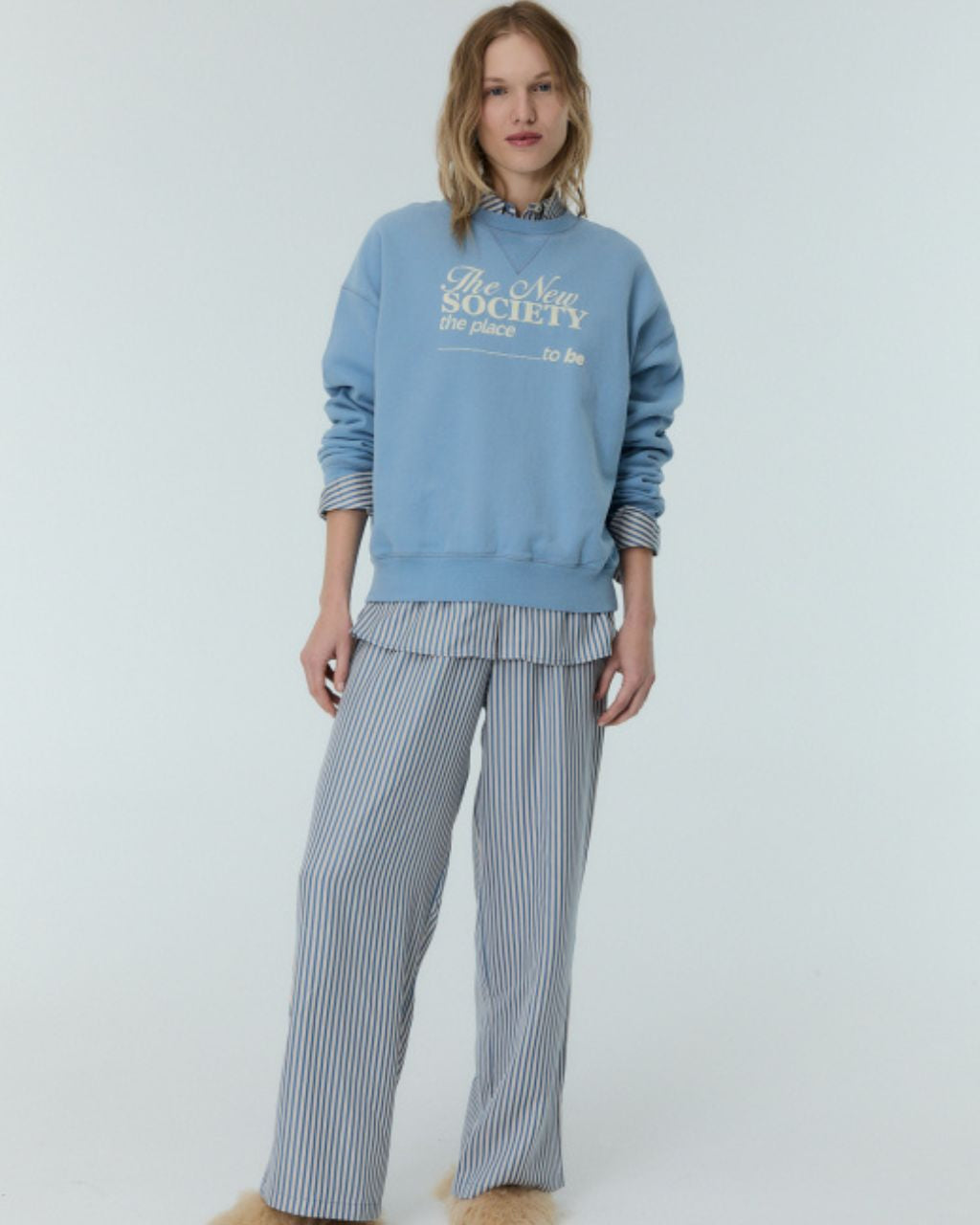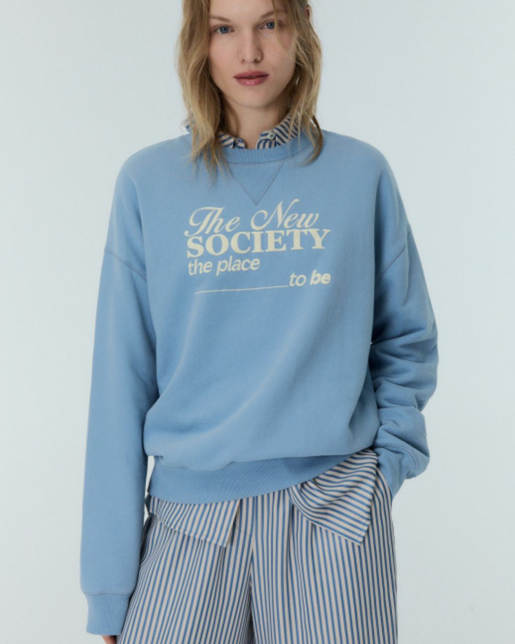 Sweatshirt with "the place to be" logo on front in contrast color, round neck, and ribbed collar, cuffs, and hem.