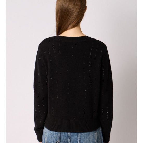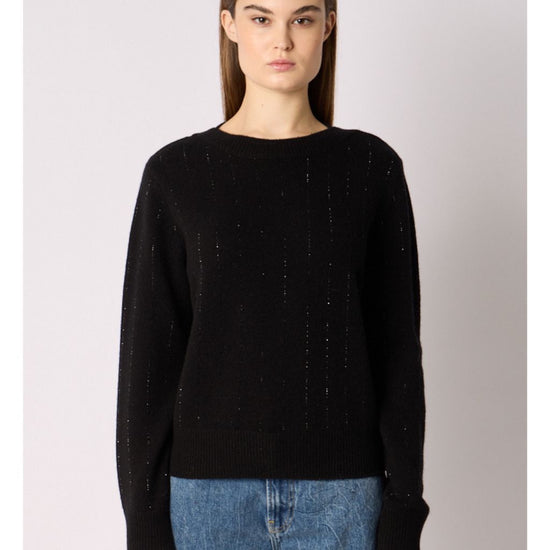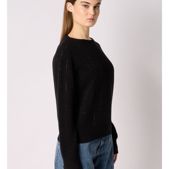 The MYSTARLIGHT sweater combines the softness of cashmere with the sparkle of rhinestone stripes, for a chic and luminous look. Its classic round neck and refined knit make it an elegant and comfortable piece.