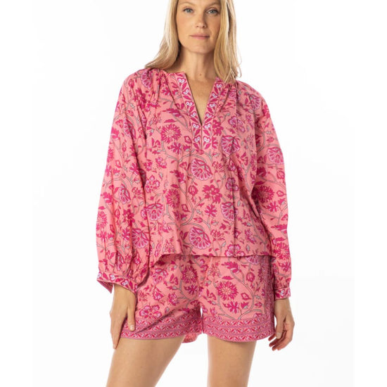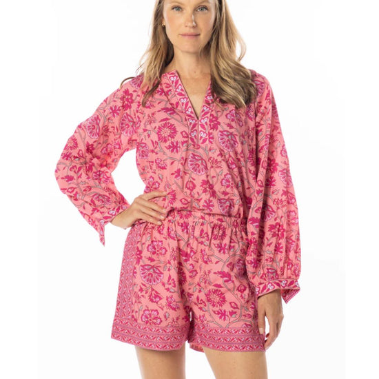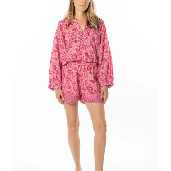 Our Robi Shorts are an essential piece this season, fresh cotton fabric with a floral print and matching borders.