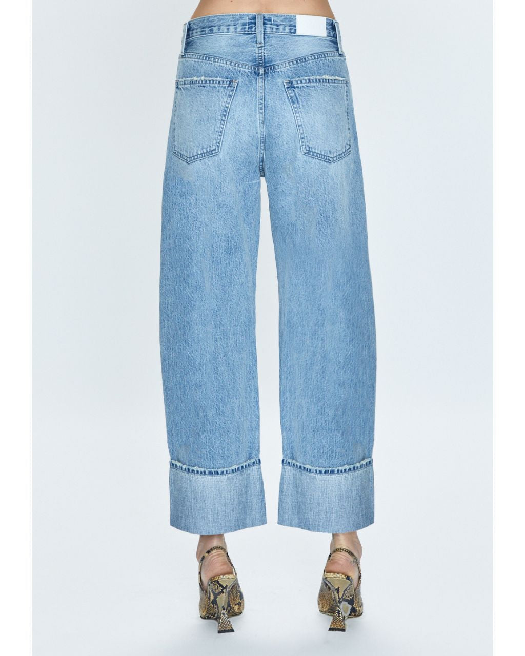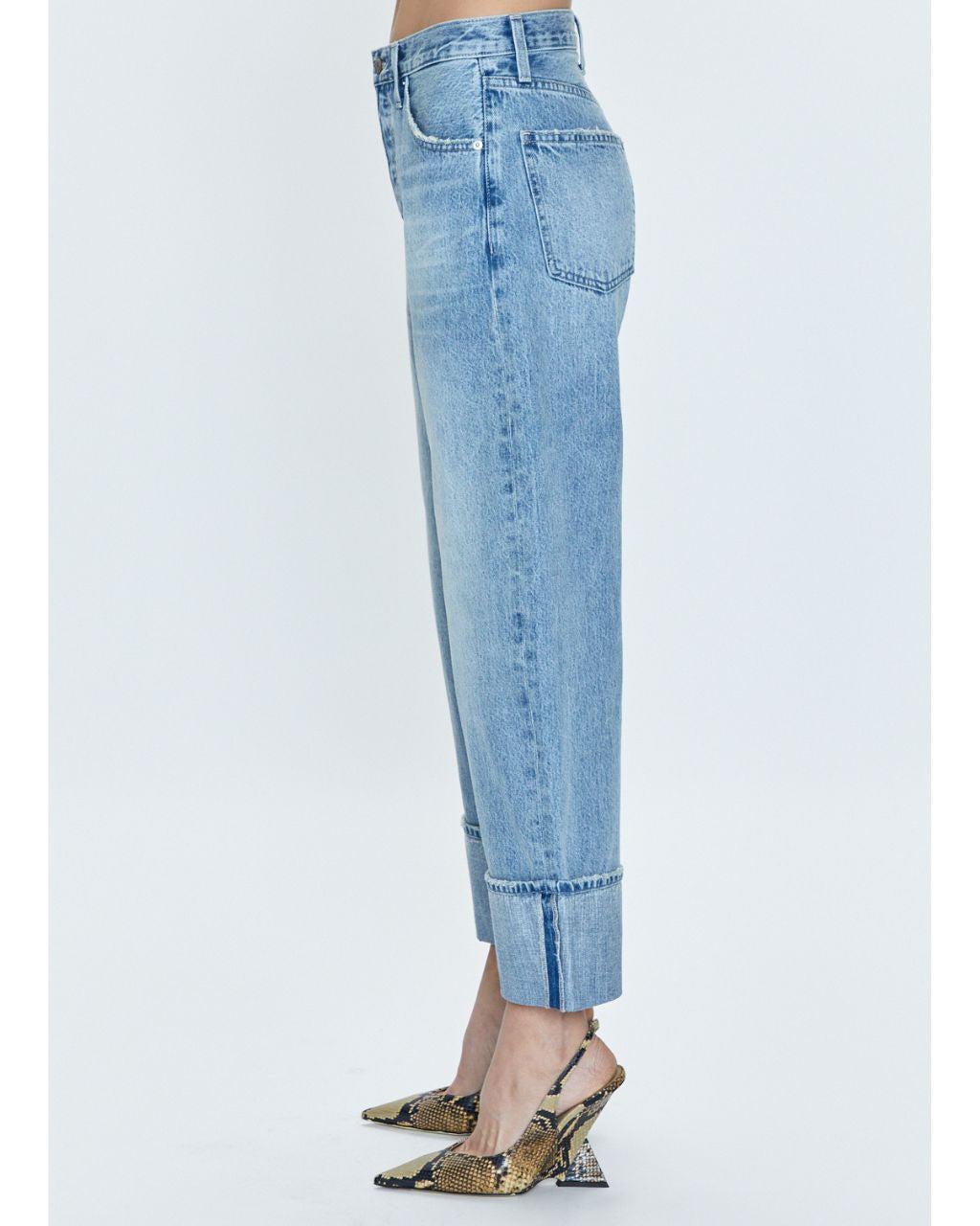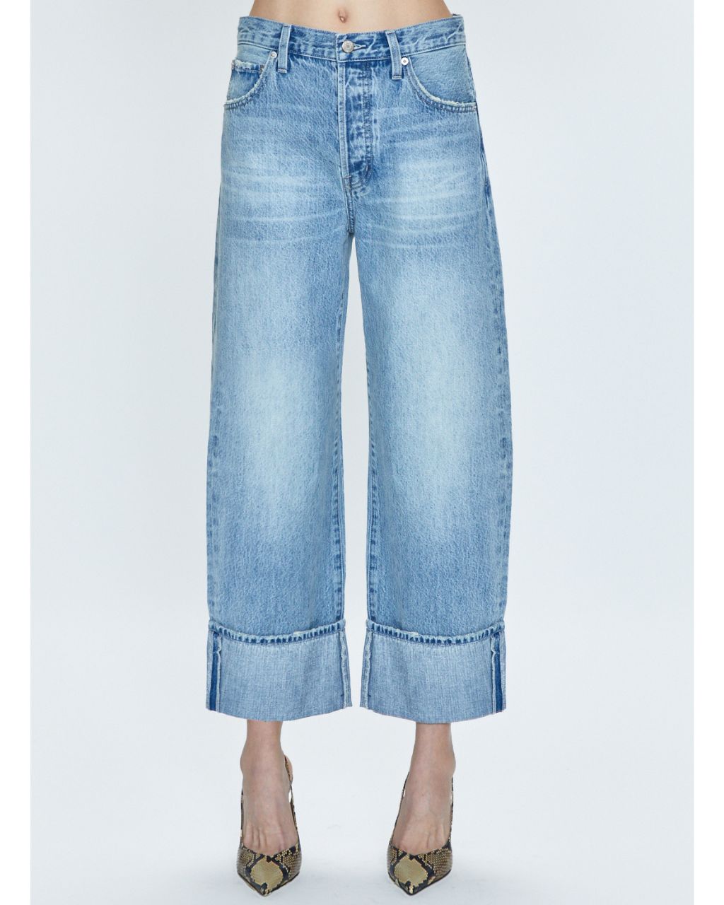 Effortless cool, expertly realized. High rise waist with a relaxed, straight leg fit and an oversized cuffed ankle hem. Crafted from rigid, lightweight denim without stretch for an expert fit that holds its shape.