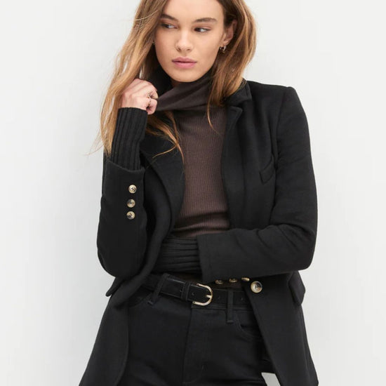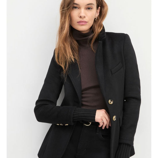 When your runway is a city sidewalk, grab this slim fit, wool-blend blazer. There’s faux horn buttons, front flap pockets, delicate stitching details and a brushed, soft finish. But our favorite part is the cotton-cashmere ribbed cuffs for when walking to work is your very own fashion show.