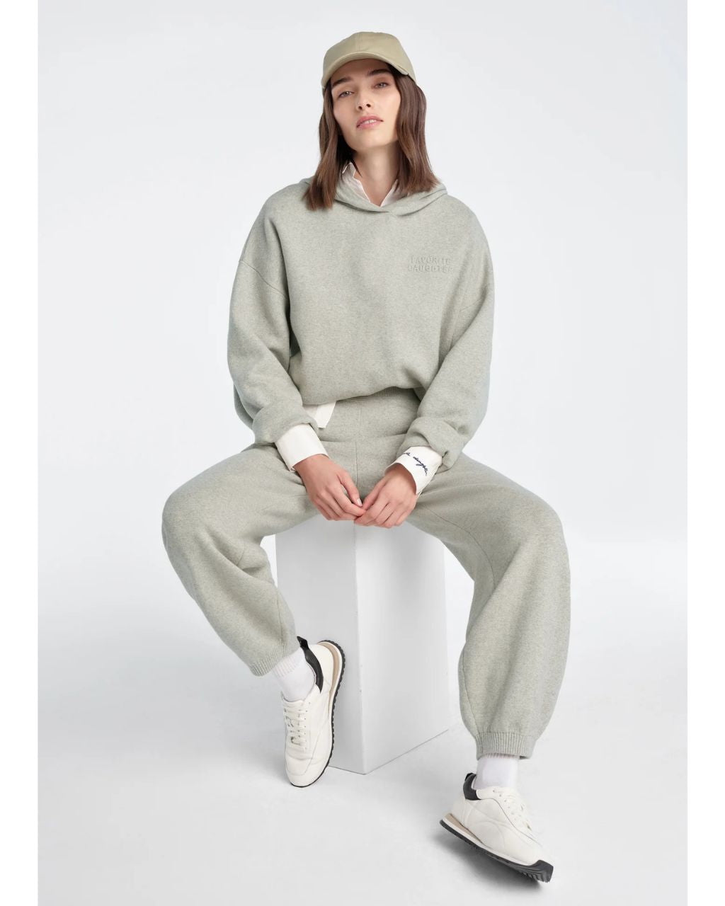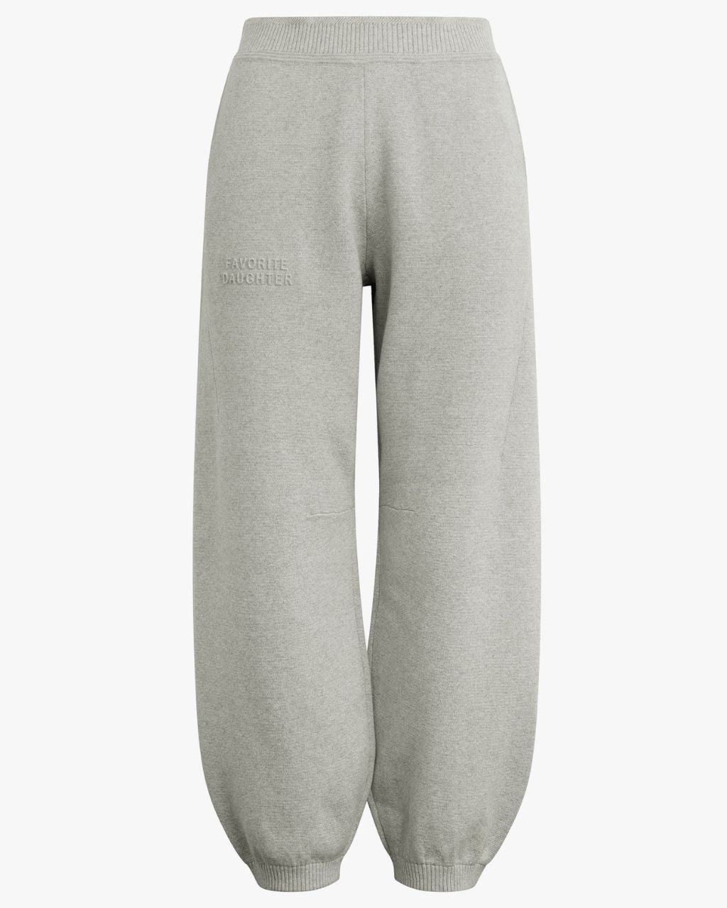 Made from a plush cashmere-knit blend, The Fatigue Sisters Barrel Jogger makes casual feel intentional. Designed with subtle shaping darts, a herringbone-stitched waistband and hem, plus our signature embossed Favorite Daughter logo. It's our favorite airport look when paired with the matching off-shoulder sweatshirt or cropped hoodie.