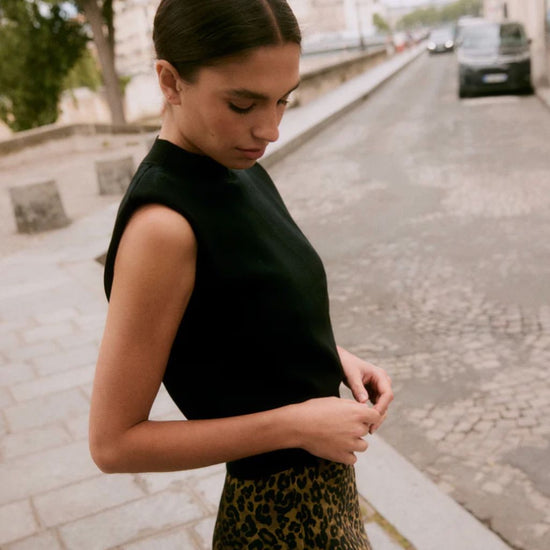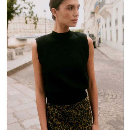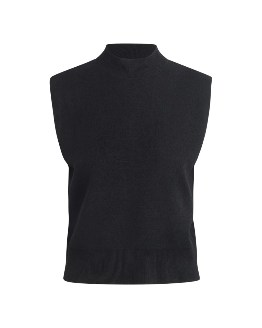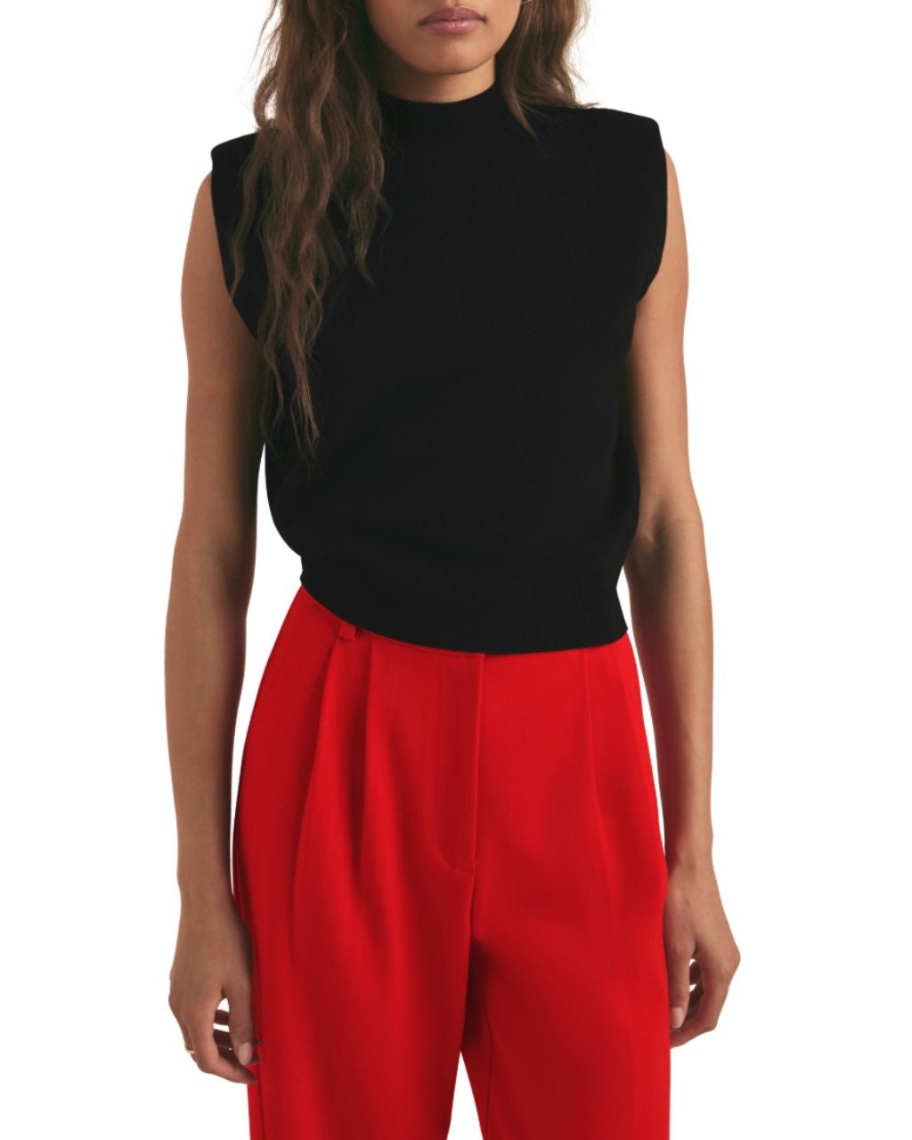 Wear The Whitney Top when you are looking for effortless, seasonless styling. With a mock neck and shoulder pads, this sleeveless top has a tailored fit that hits perfectly at the waist. Plus, it's made from a plain stitch knit so it's soft and easy to wear.